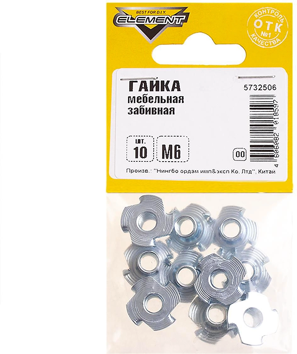 Гайка DIN 1624 Element забивная М6 10 шт