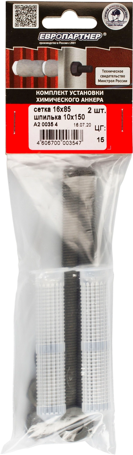 - Готовое монтажное решение: в состав комплекта входит сетчатая гильза для инжекционной массы и анкерная шпилька в комплекте с гайкой и шайбой.