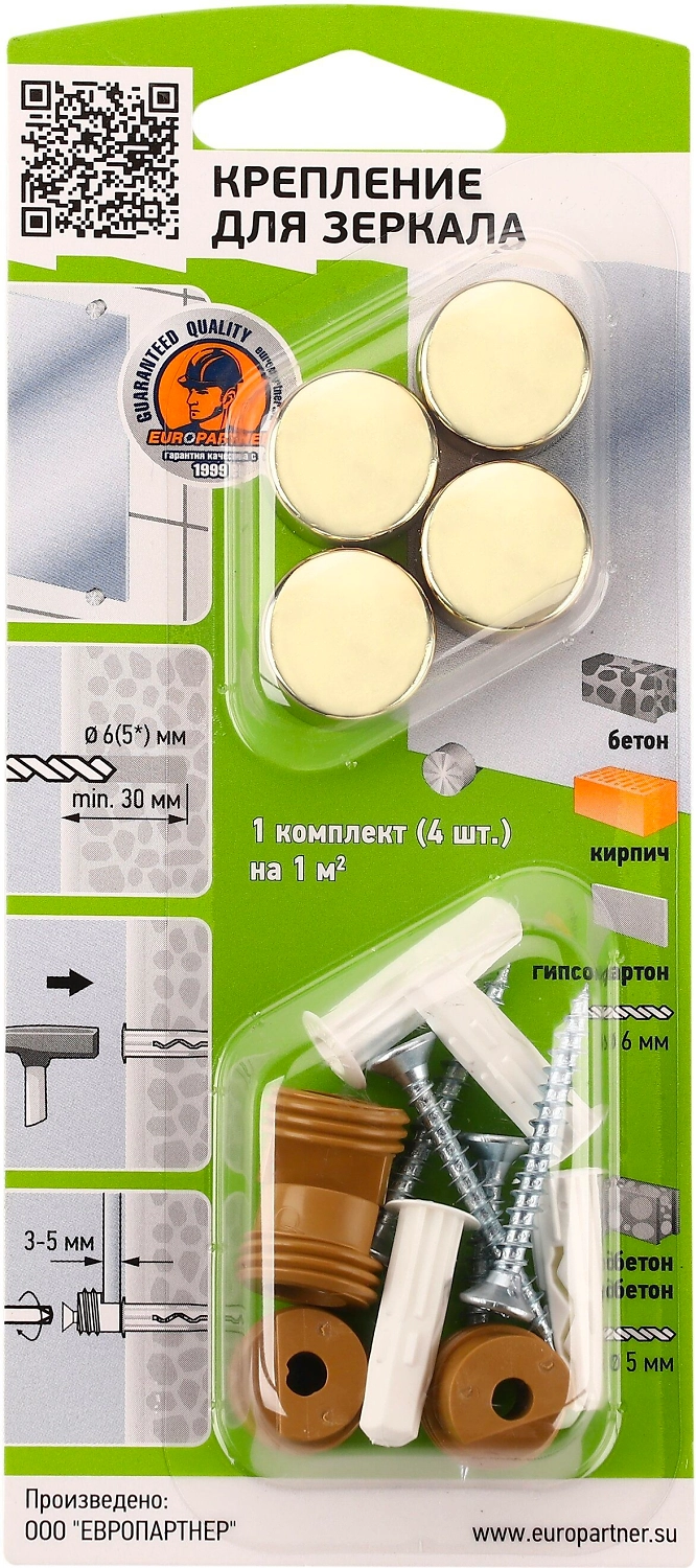 Крепление для зеркала ЕВРОПАРТНЕР гладкое золото 18 мм 4 шт