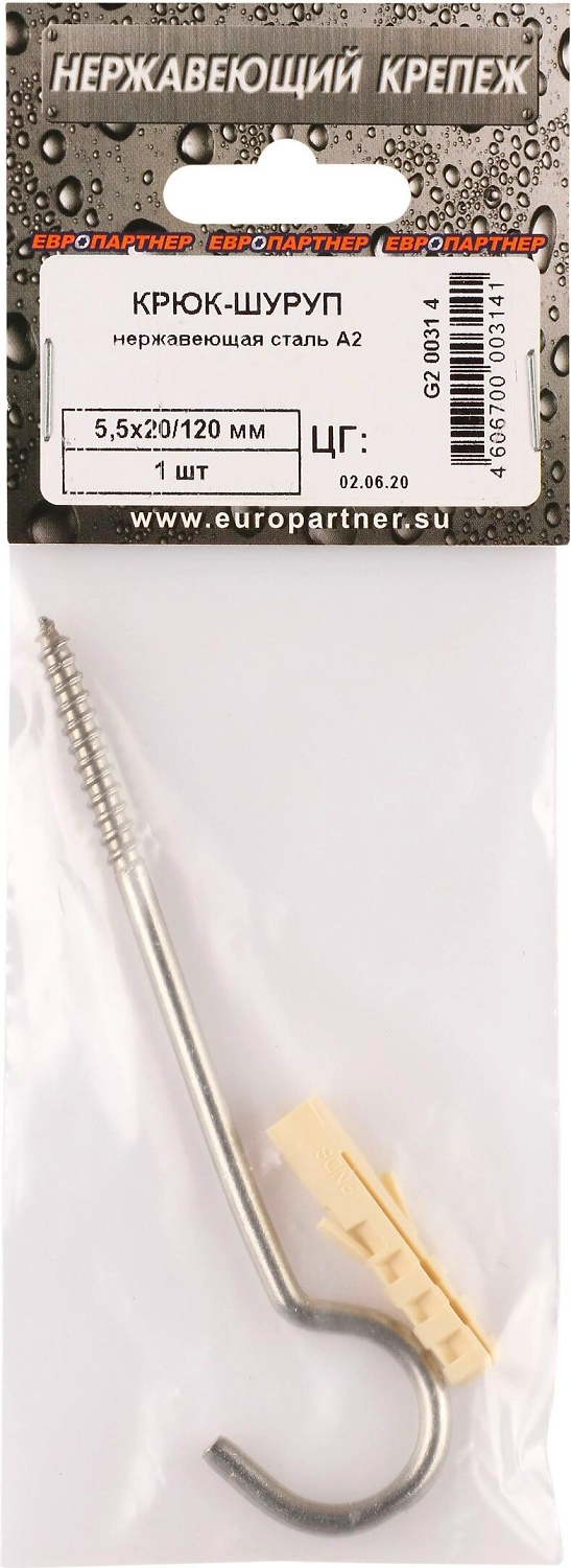 Крюк-шуруп 5,5 х 12/40 нержавеющая сталь 1 шт