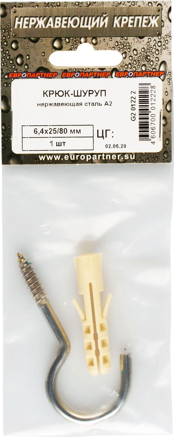 Крюк-шуруп 6,4 х 25/80 нержавеющая сталь 1 шт