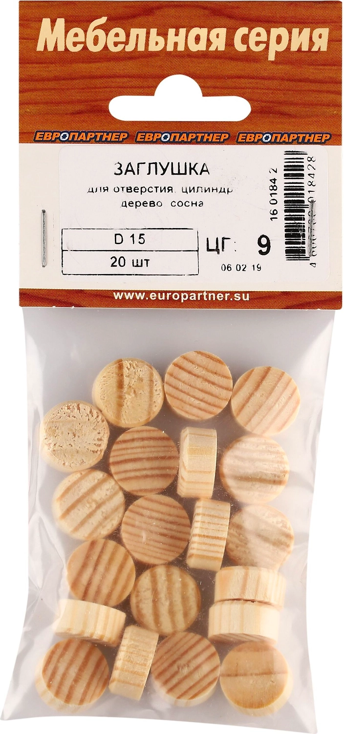 Мебельная заглушка ЕВРОПАРТНЕР древесина сосна 15 мм 20 шт