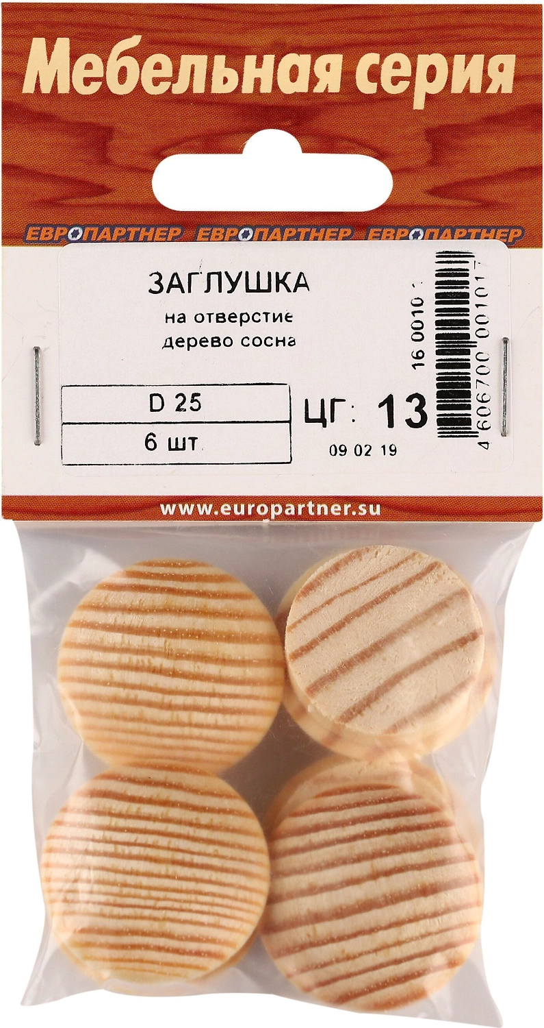 Мебельная заглушка ЕВРОПАРТНЕР древесина сосна 25 мм 6 шт