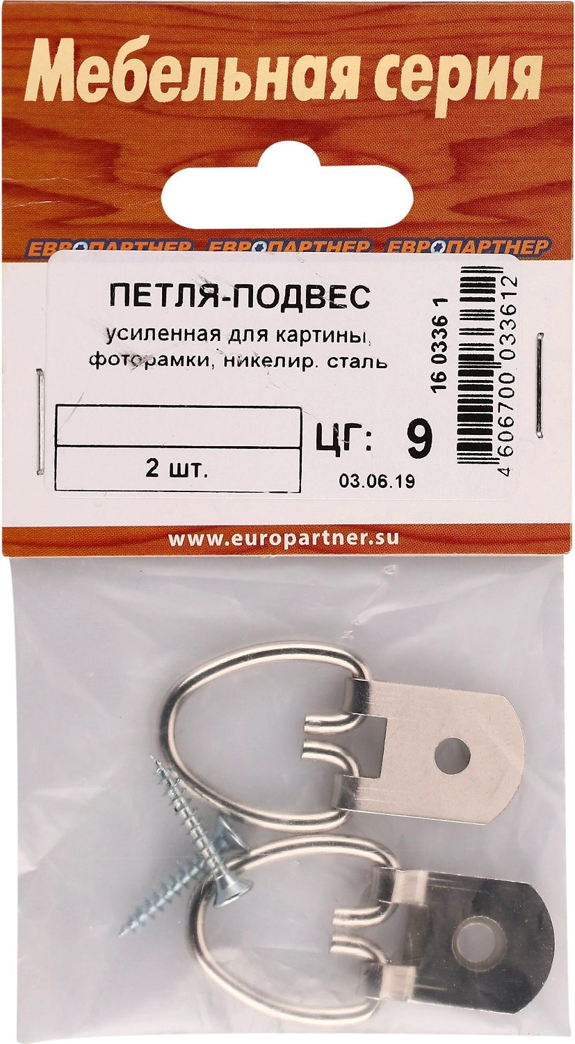 Петля-подвес усиленная для картины, фоторамки, никель 2 шт