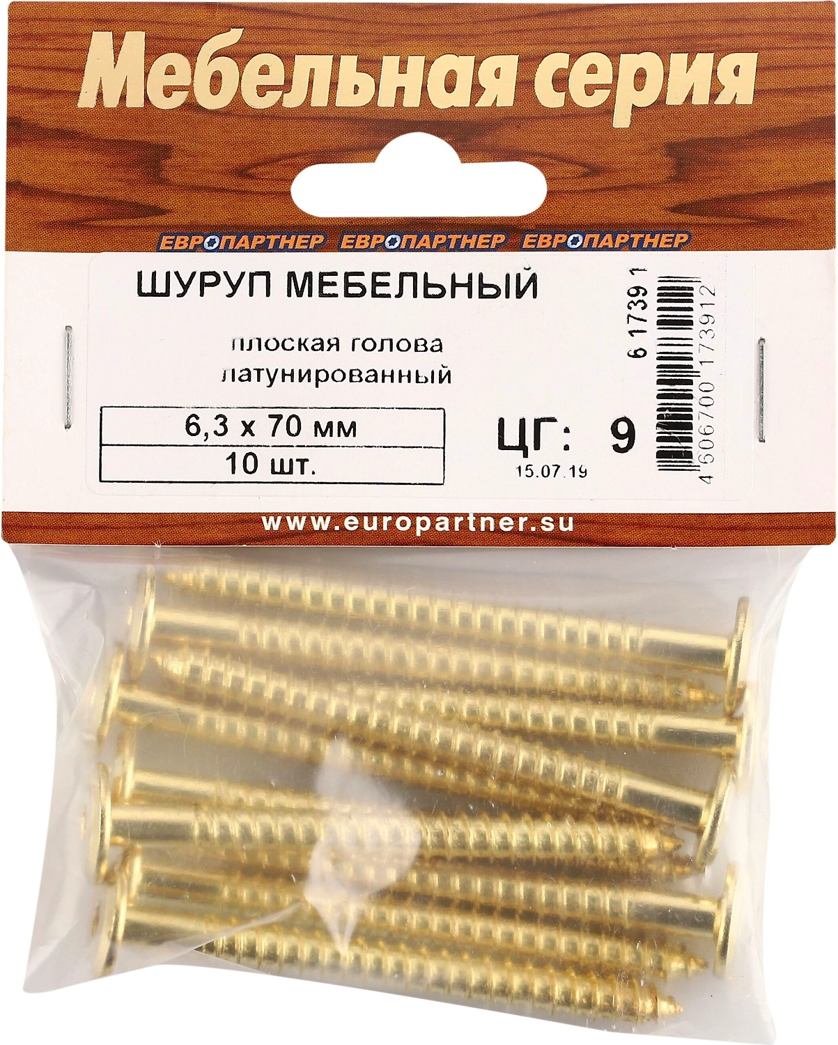 Шуруп мебельный с плоской головой латунированный 6,3 х 70 мм 10 шт