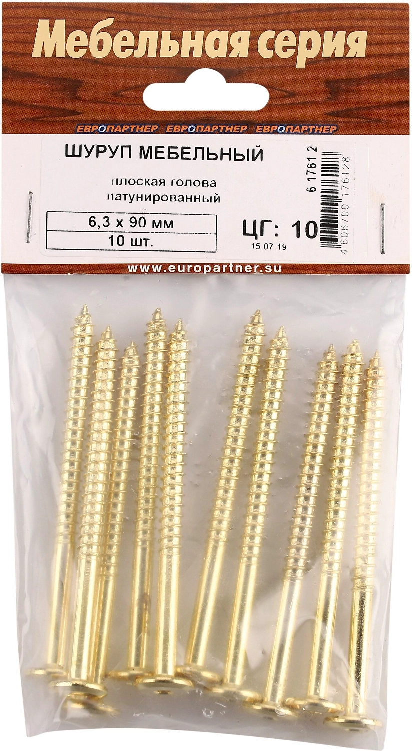 Шуруп мебельный с плоской головой латунированный 6,3 х 90 мм 10 шт