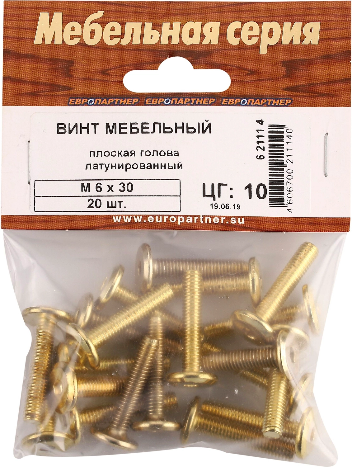 Винт мебельный с плоской головой латунированный М 6 х 30 мм 20 шт