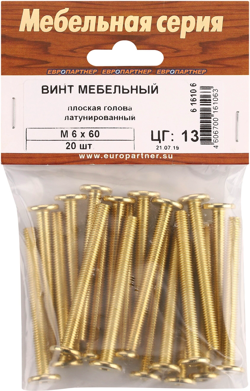Винт мебельный с плоской головой латунированный М 6 х 60 мм 20 шт