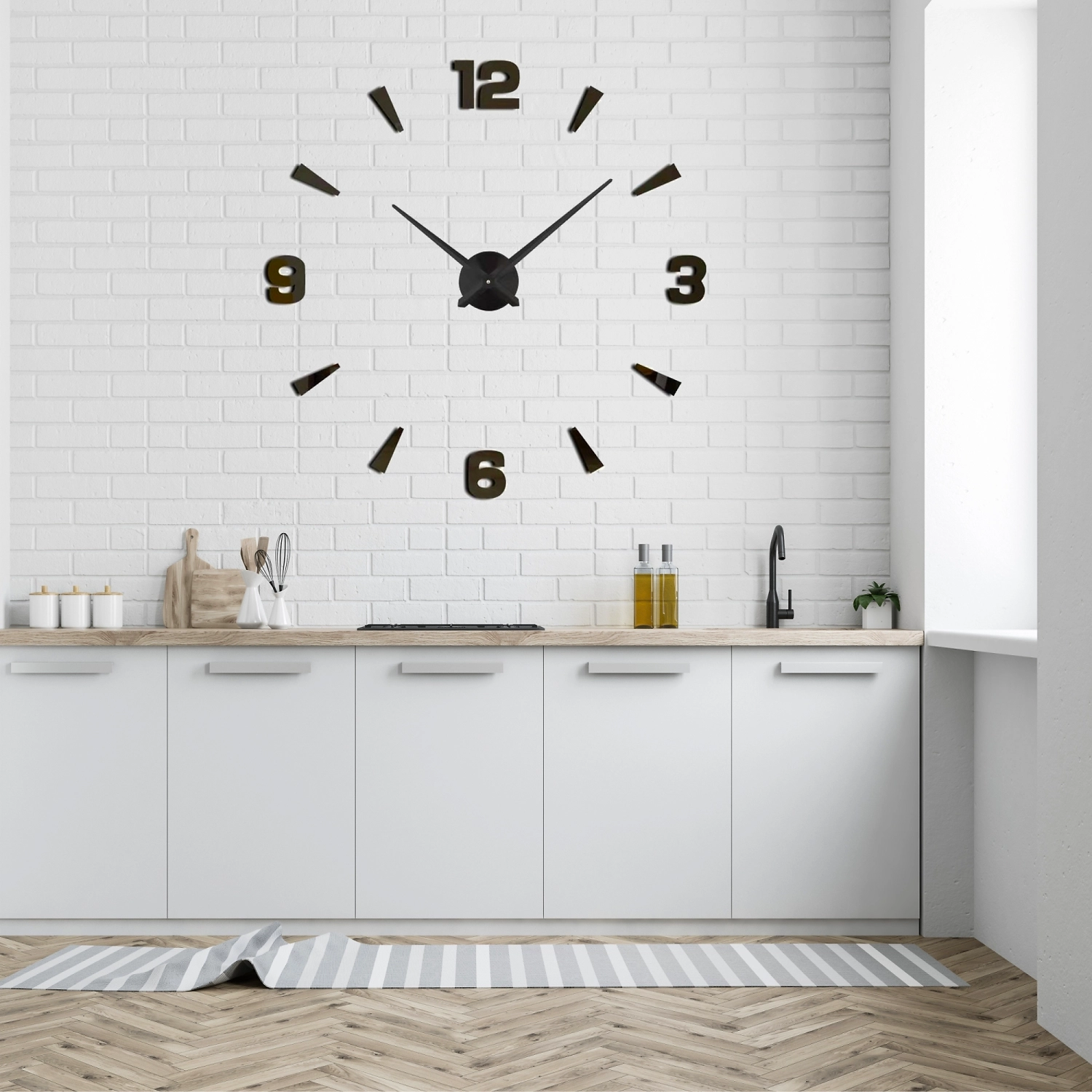 Настенные часы с артикулом DIY210330 выполнены в виде конструктора, с помощью которого можно изготовить свои уникальные часы с рекомендованным диаметром циферблата от 80 см до 100 см.