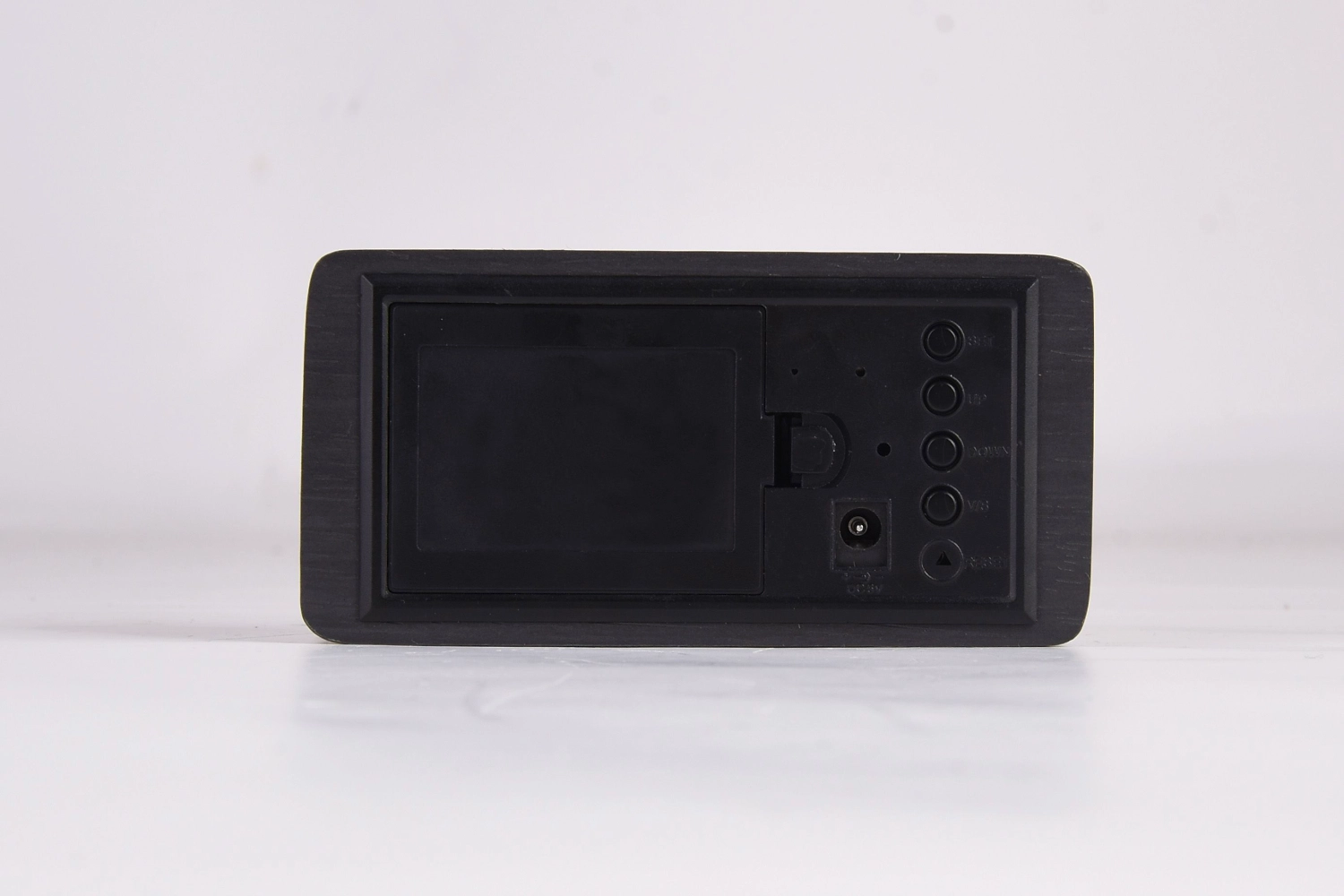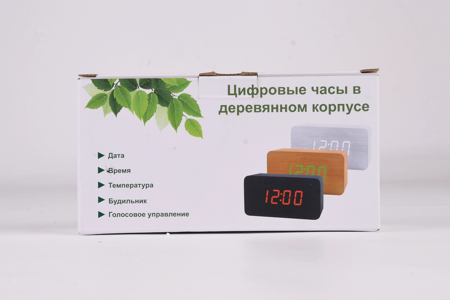 Цифровые настольные часы-будильник в деревянном корпусе. Отображение времени/даты/температуры. Три установки будильника. Возможность регулирования звука.