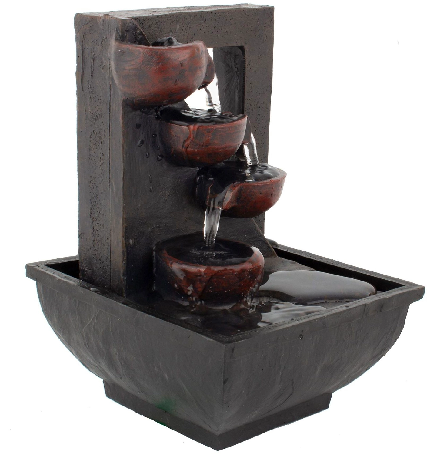 Комнатный фонтан ТМ "GARDEN SHOW" предназначен для декорирования интерьера и создания уютной атмосферы внутри помещений. Спокойное журчание воды поможет расслабиться. Этот аксессуар можно расположить в любом месте вашей квартиры - на кухне или в спальне для дополнительной релаксации после сложного дня. Он не займет много места и станет приятным и нужным подарком. Фонтан выполнен в виде каскада преливающих чаш, в минималистичном стиле. Работает от сети 220 v. Длина шнура 1,5 м. Размер: 13,5 х13,5 х19 см.