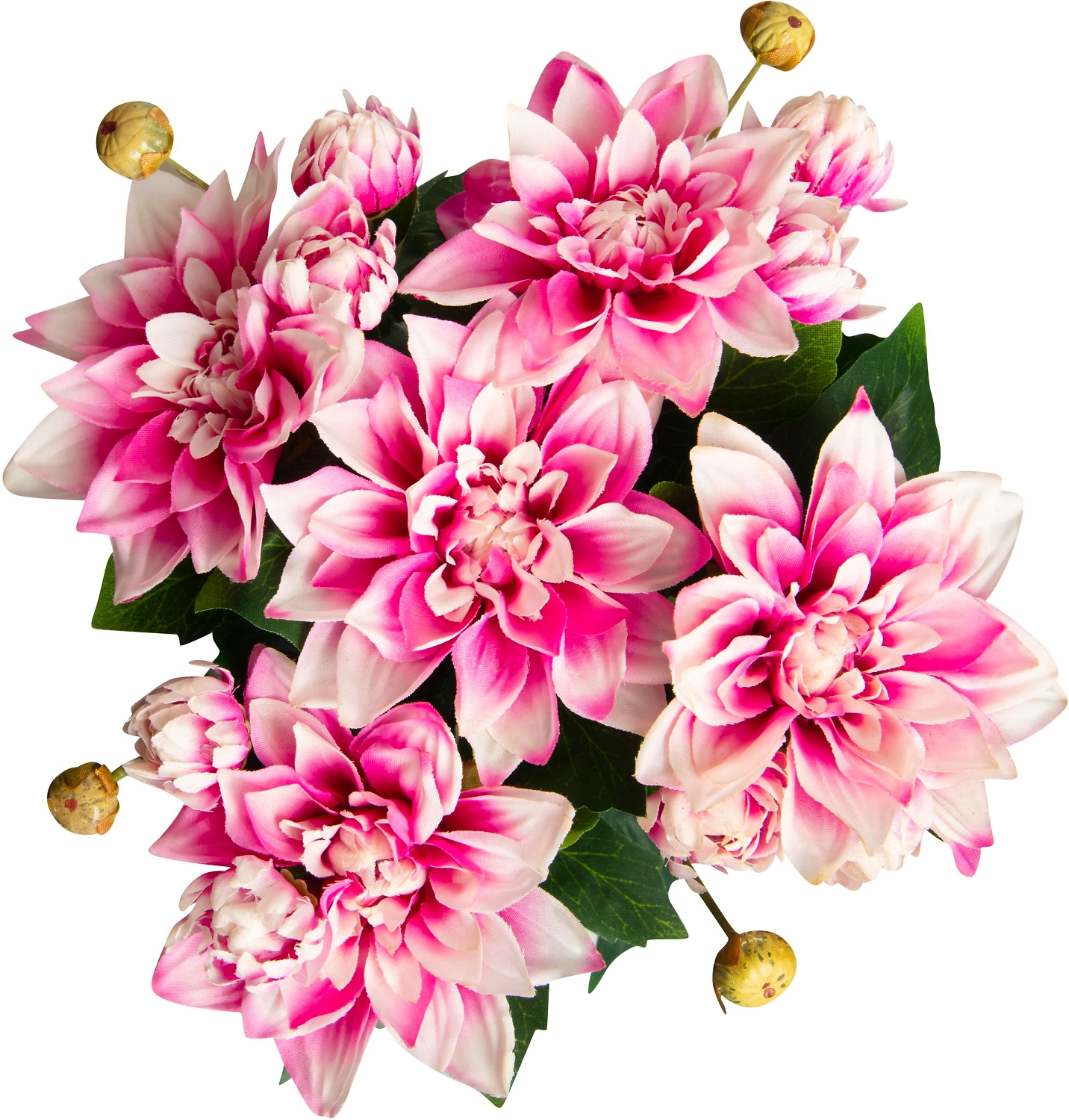 Растение искусственное георгина бело-розовая 30 см реалистично имитирует живой цветок в горшке. Декор украшает и освежает помещение, привносит в офисный или жилой интерьер яркие краски лета.