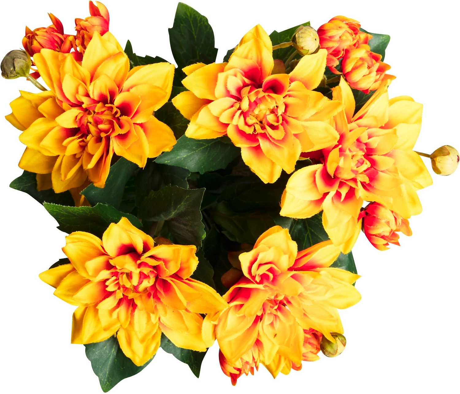 Растение искусственное Георгина желто-оранжевая 30 см реалистично имитирует живой цветок в горшке. Декор украшает и освежает помещение, привносит в офисный или жилой интерьер яркие краски лета.