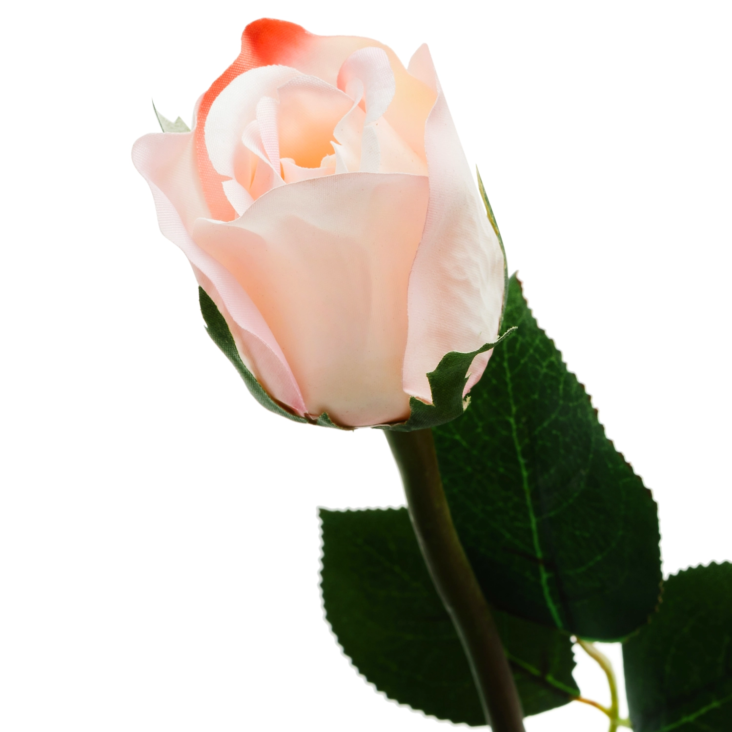 Искусственная роза Real Touch - достоверная копия настоящей. Современные материалы с точностью передают красоту лепестков в едва распустившемся бутоне, рельефные прожилки листьев, гладкую узловатую фактуру стебля.
