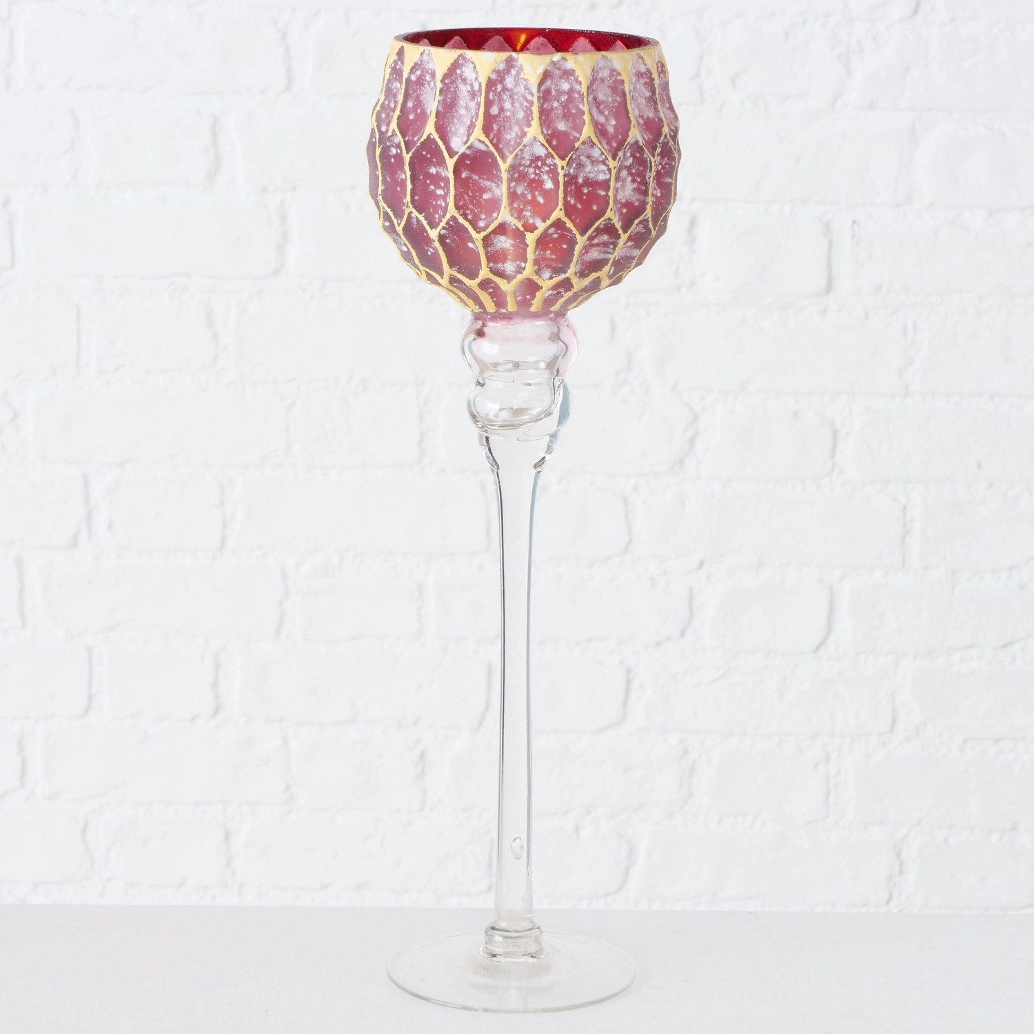 Данная модель в цвете желтый, красный, желтый обязательно придется по вкусу любому ценителю современных дизайнерских интерьеров. Подсвечник в виде бокала на высокой ножке выполнен в стиле ар-деко из стекла.