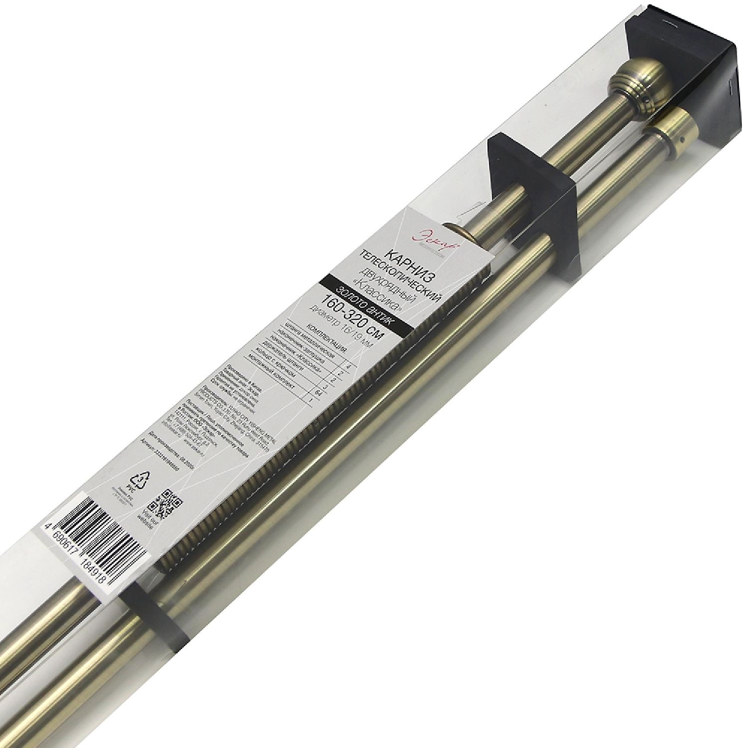 Телескопический двухрядный карниз, наконечник классика, золото антик, 16/19 мм, 160-320 см. Данный карниз практичное и стильное решение для подвеса штор, сделан из долговечного и прочного материала.