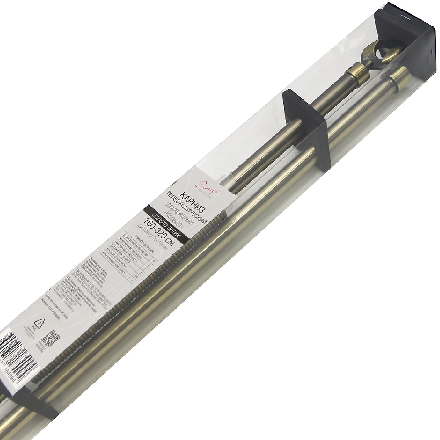 Карниз двухрядный Эскар телескопич, наконечник кольцо, 160-320 см, золото антик