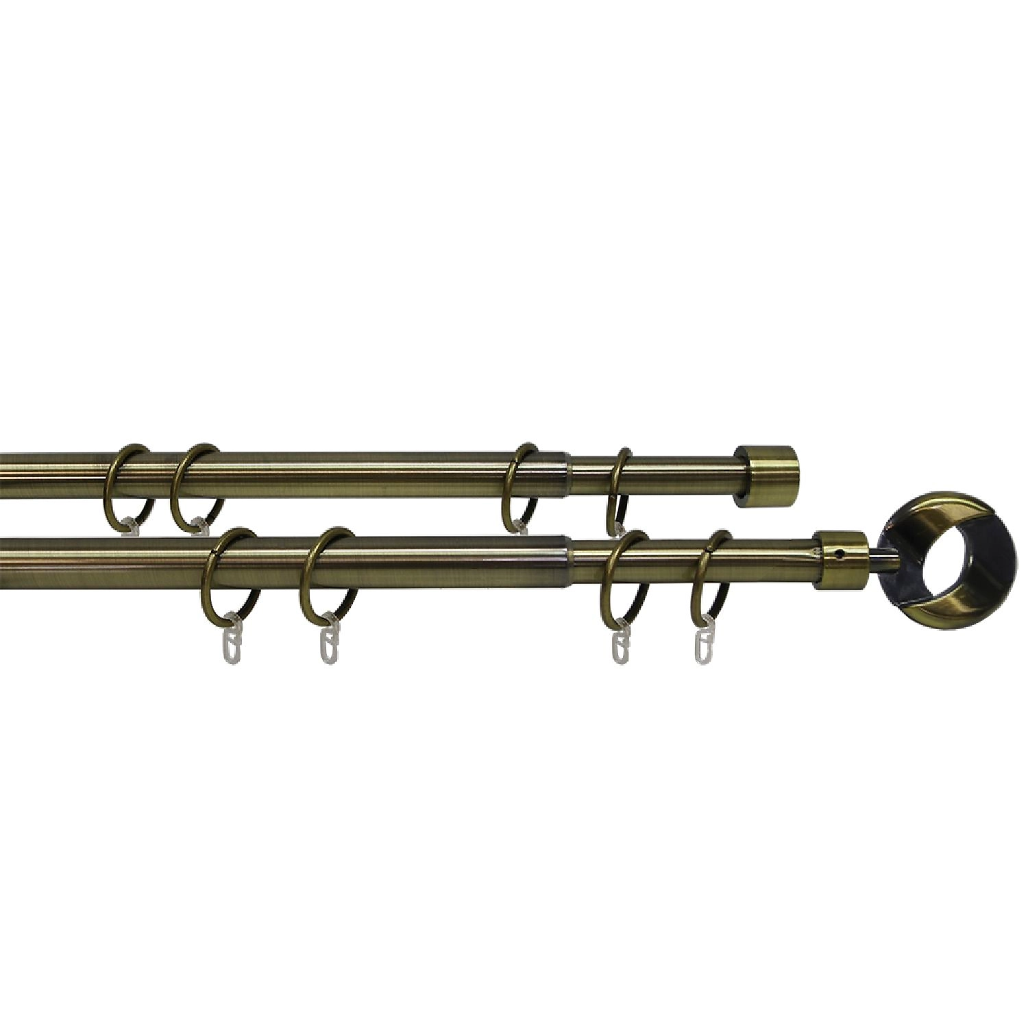 Телескопический двухрядный карниз, наконечник кольцо, золото антик, 16/19 мм, 160-320 см. Данный карниз практичное и стильное решение для подвеса штор, сделан из долговечного и прочного материала.