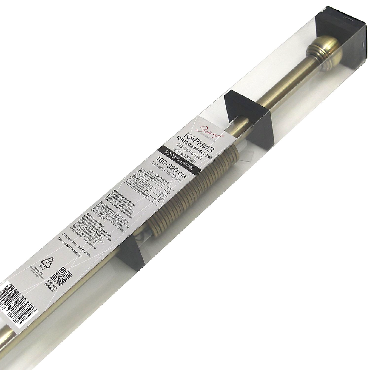 Телескопический однорядный карниз, наконечник классика, золото антик, 16-19мм, 160-320см. Данный карниз практичное и стильное решение для подвеса штор, сделан из долговечного и прочного материала.