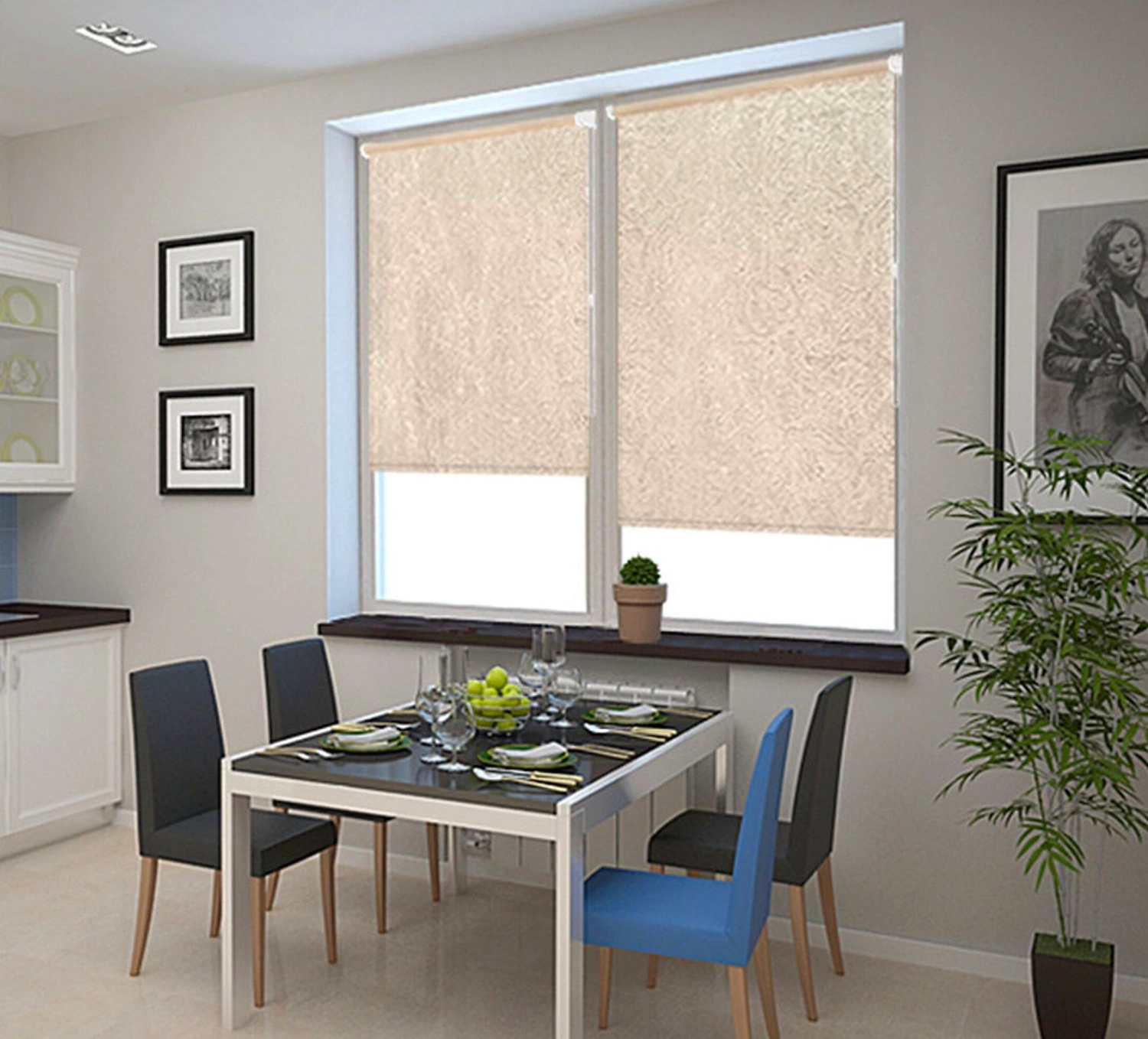 Современный вариант оформления окон. Рулонные шторы способны добавить интерьеру живости и оригинальности. Они могут использоваться как самостоятельно, так и в сочетании с традиционными шторами.