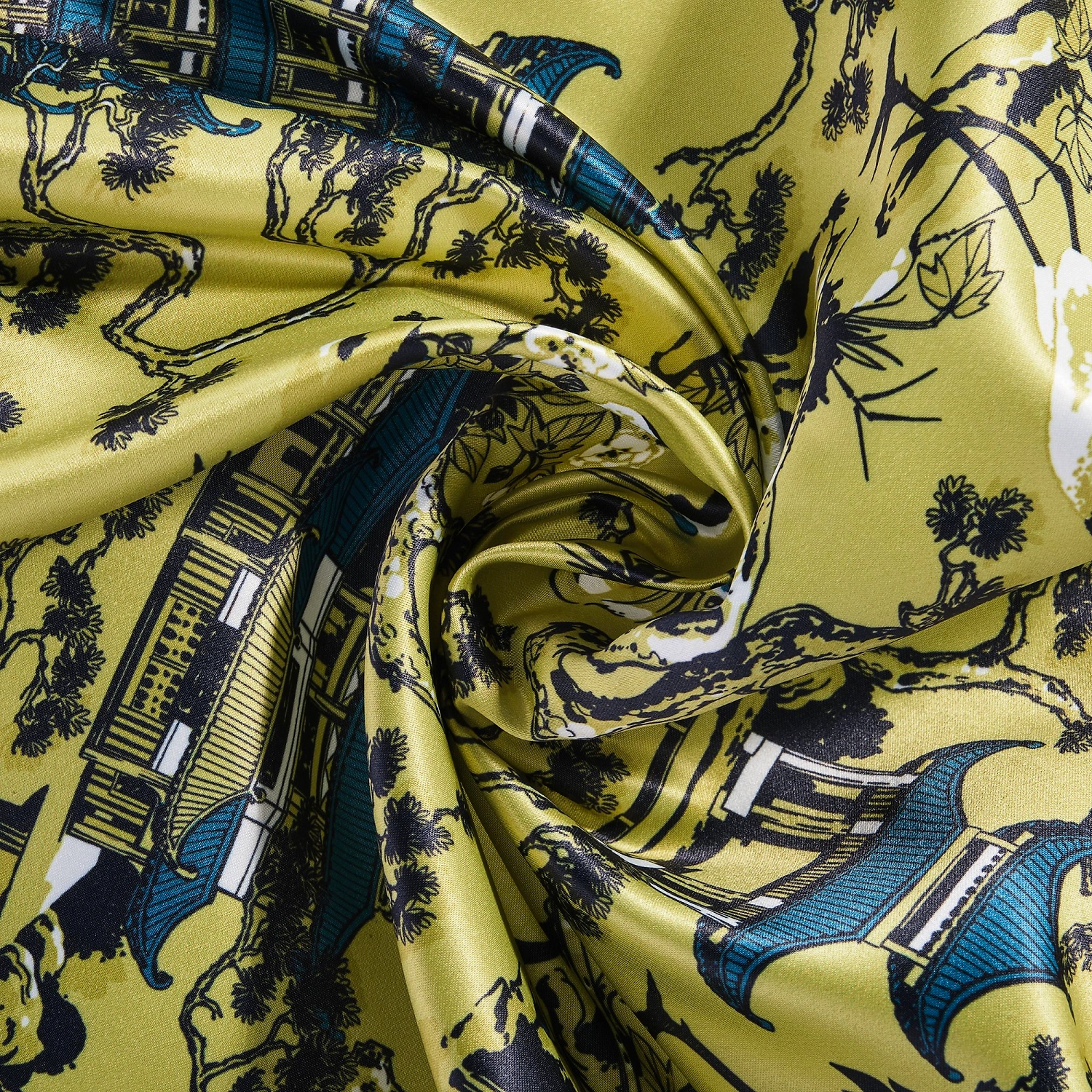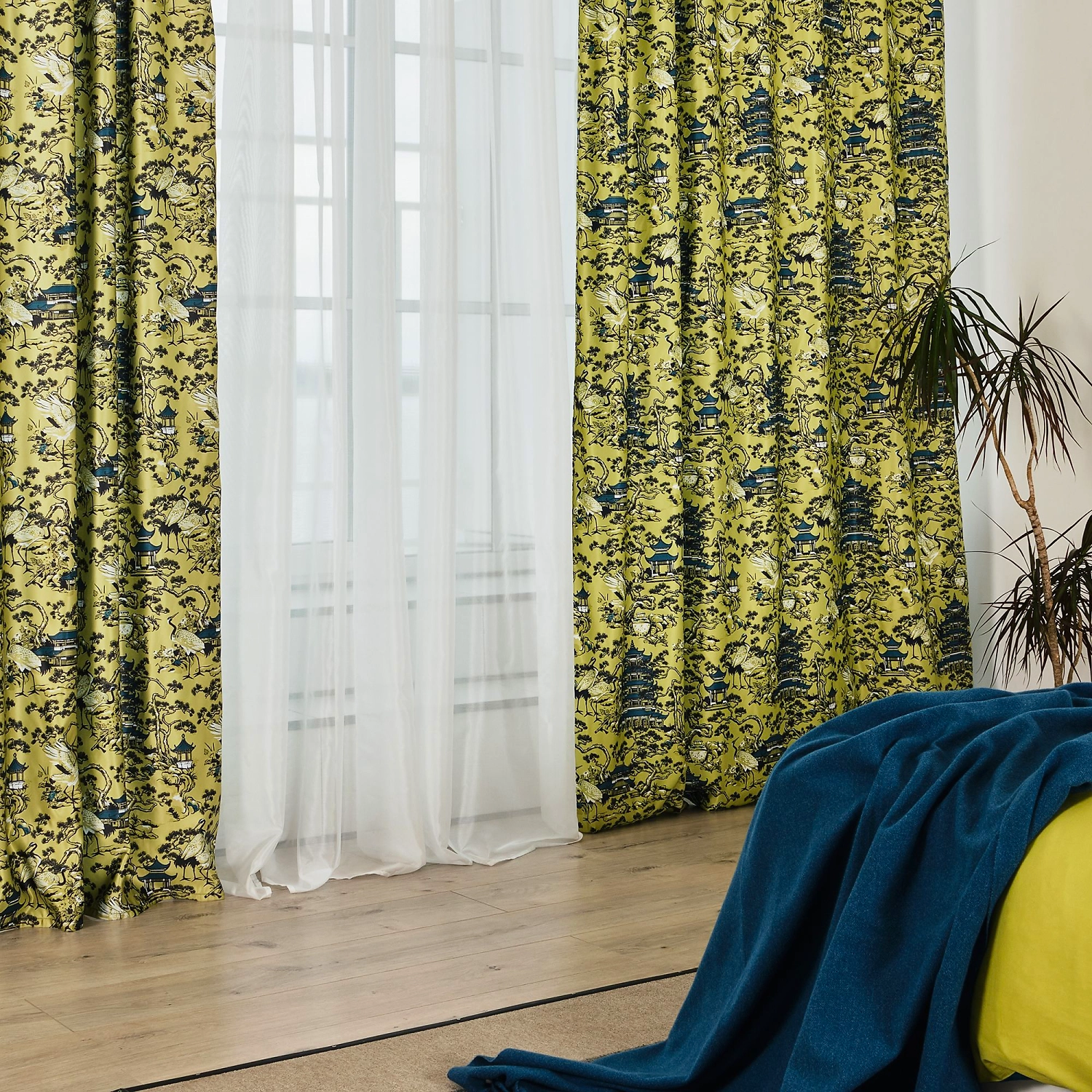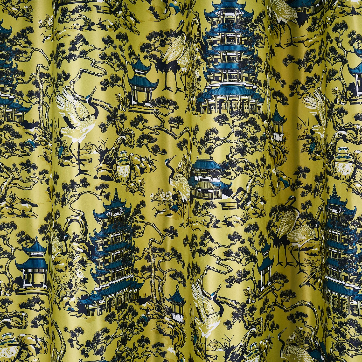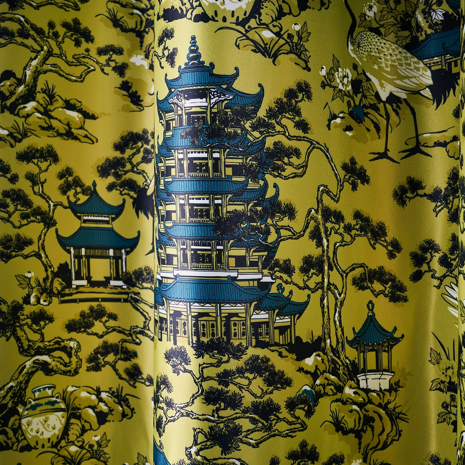 Готовая штора 160х270 см. зелёного цвета выполнена в стиле шинуазри, популярном в интерьерах французской и европейской знати 18 века. Оснащена шторной лентой для красивой сборки.