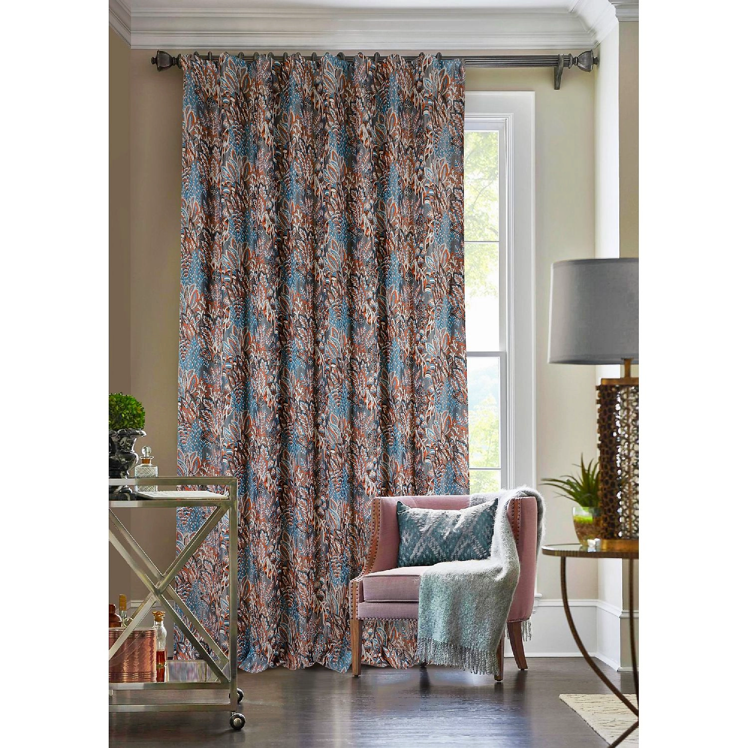 Стильная портьера отличается плотной текстурой и высокой износостойкостью, не выгорает на солнце, не теряет форму и отлично защищает от солнечных лучей.