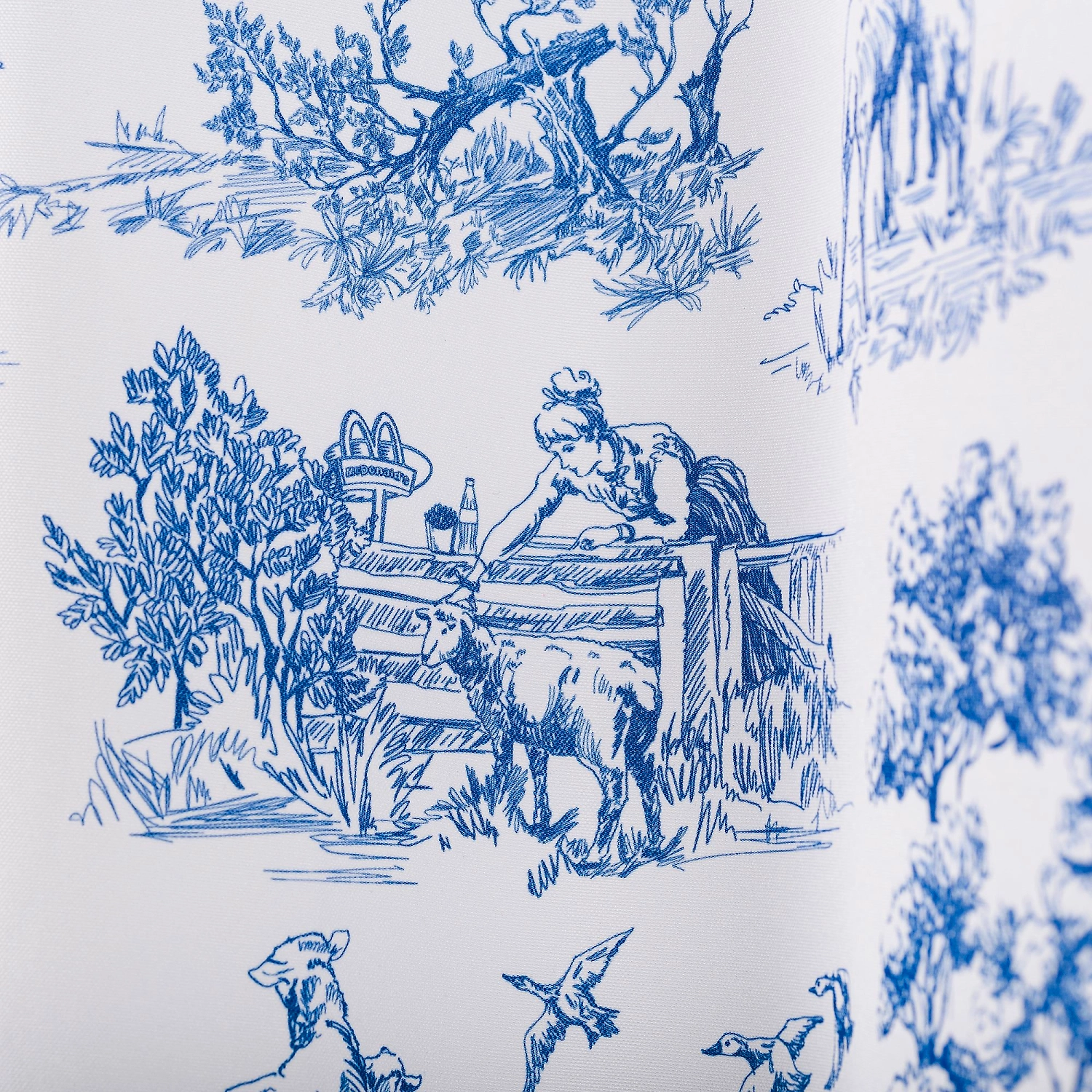 Готовая штора 140х260 см из коллекции Klassika 2.0 — авторское прочтение моды 18 века. Тогда был популярен французский стиль туаль де жуи с характерными пасторальными сценками. В представленной версии классический жуи переосмыслен заново и дополнен атрибутами из цифрового мира.