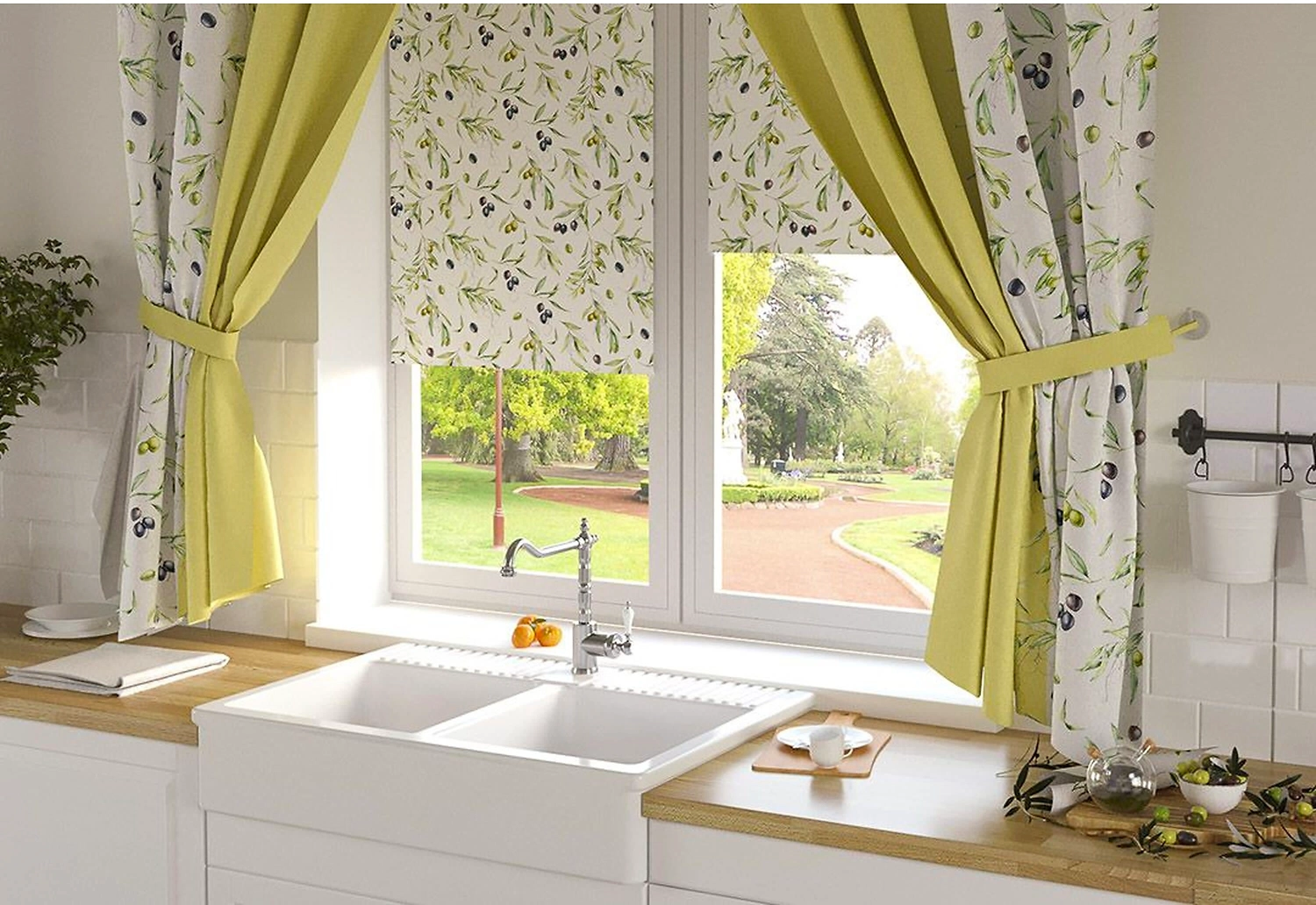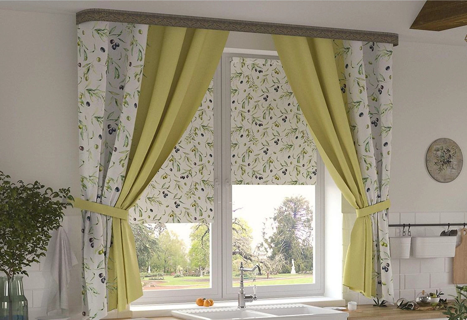 В состав данного комплекта входят шторы и подхваты "Олива". Комплект не просто практичный, а красивый и современный. Шторы защищают от жгучих солнечных лучей и помогают сохранить комфортный температурный режим в летний период.