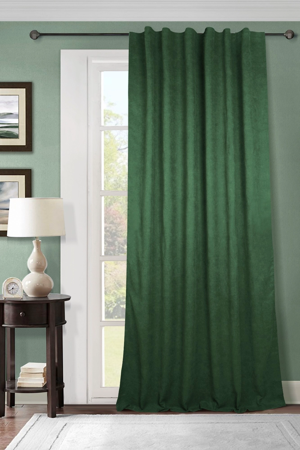 Штора портьерная Однотонная зеленая 140х280 см