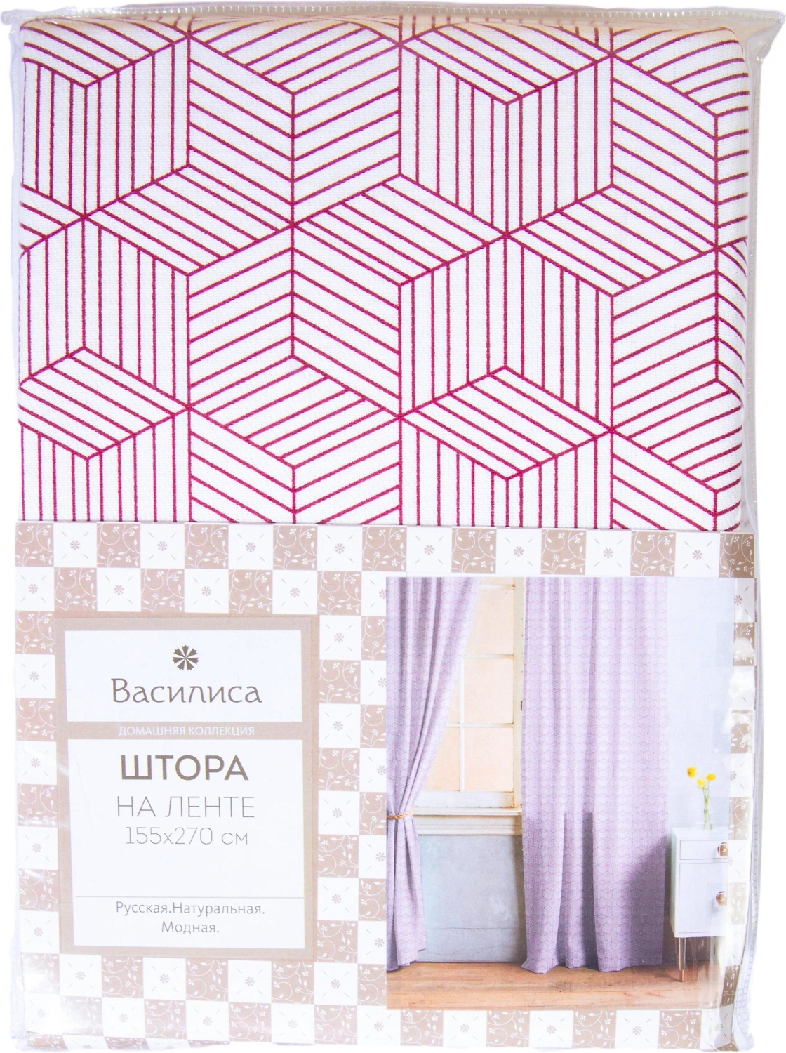 Штора портьерная Василиса хлопковая PINK21 155х270 см розовая 1 шт