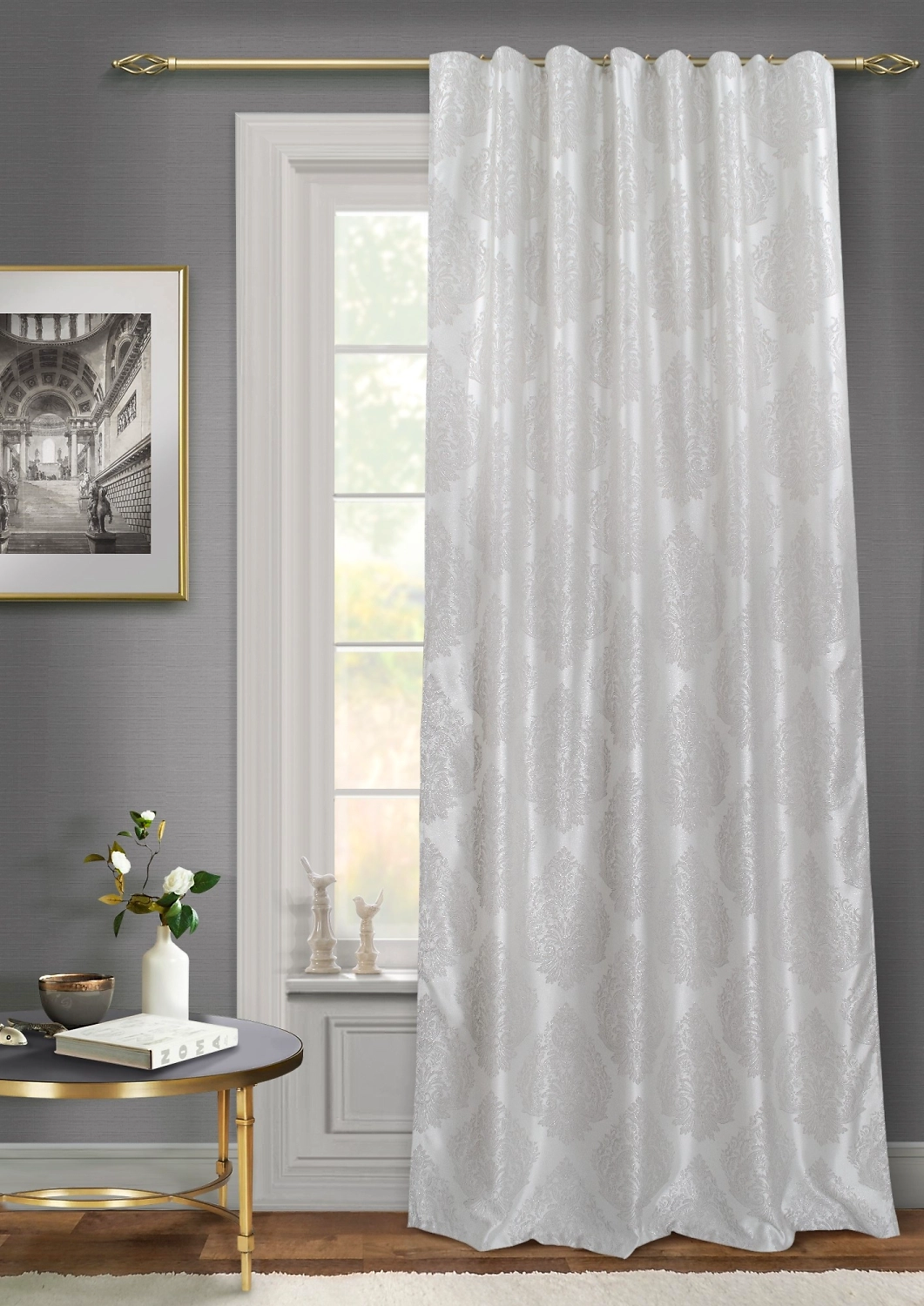 Штора портьерная Жаккард дамаск светло-молочный 140х280 см