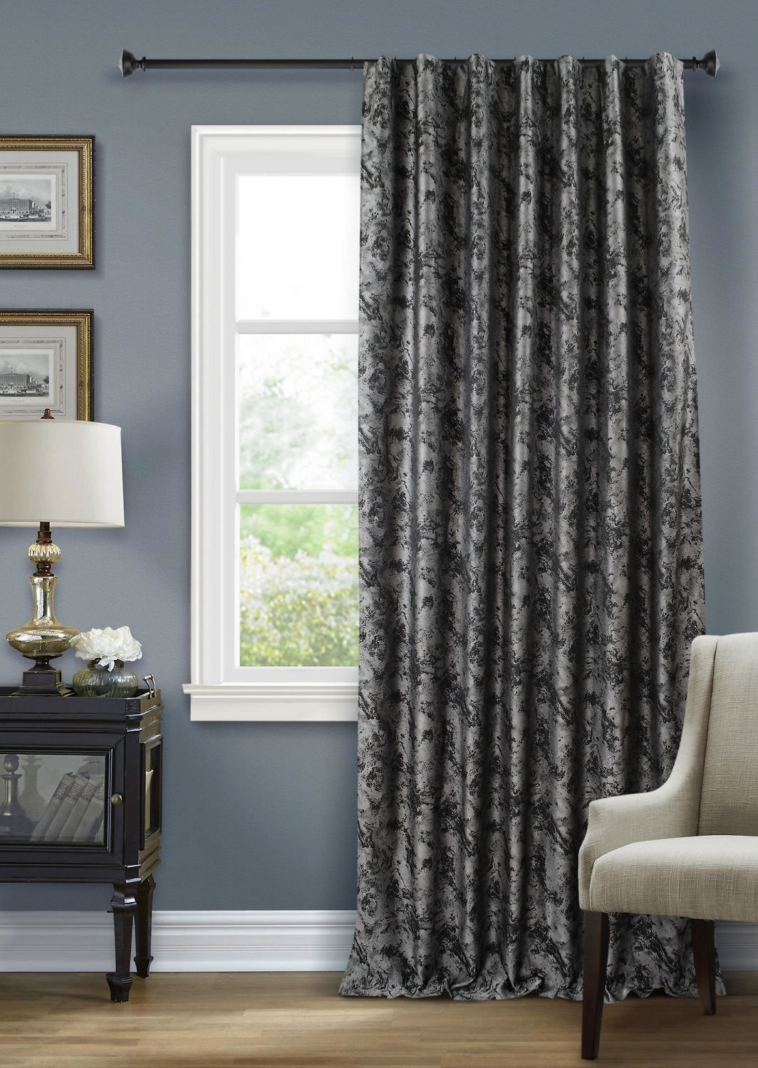 Штора портьерная Жаккард мрамор темно-серая 140х280 см