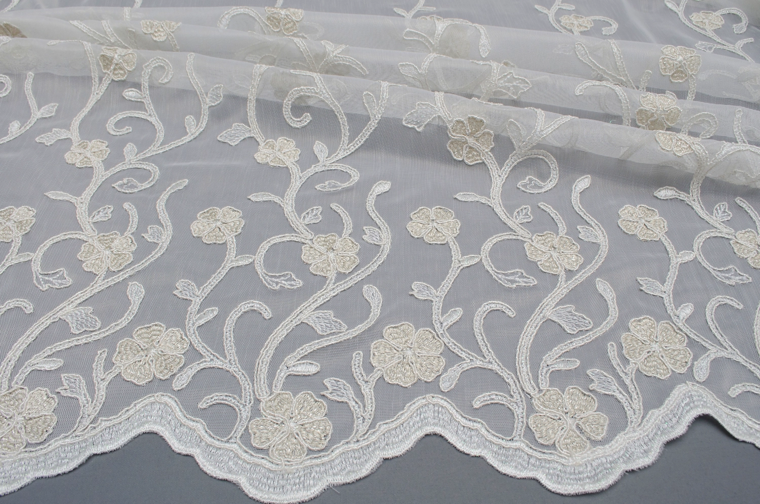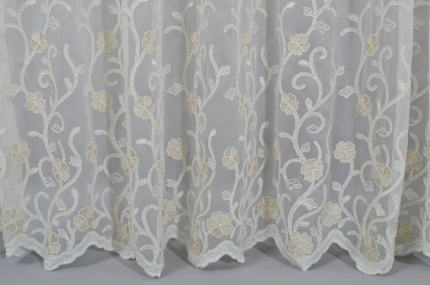 Штора тюль Вышивка бело-коричневая 300х280 см