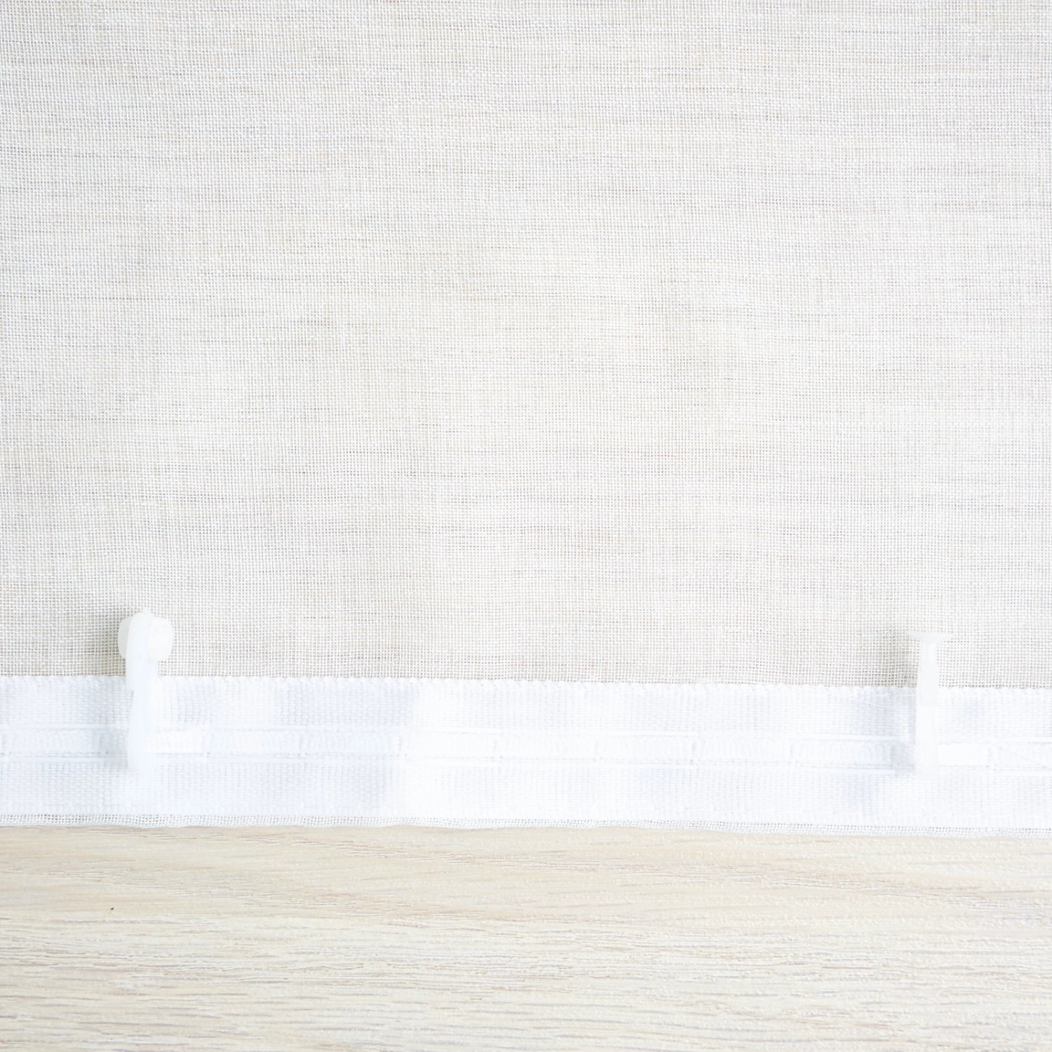 К шторе пришита шторная лента шириной 2 см, крепление к карнизу на крючки. Внутри шторной ленты пропущен шнур-корд для стягивания, он позволит красиво задрапировать складки.