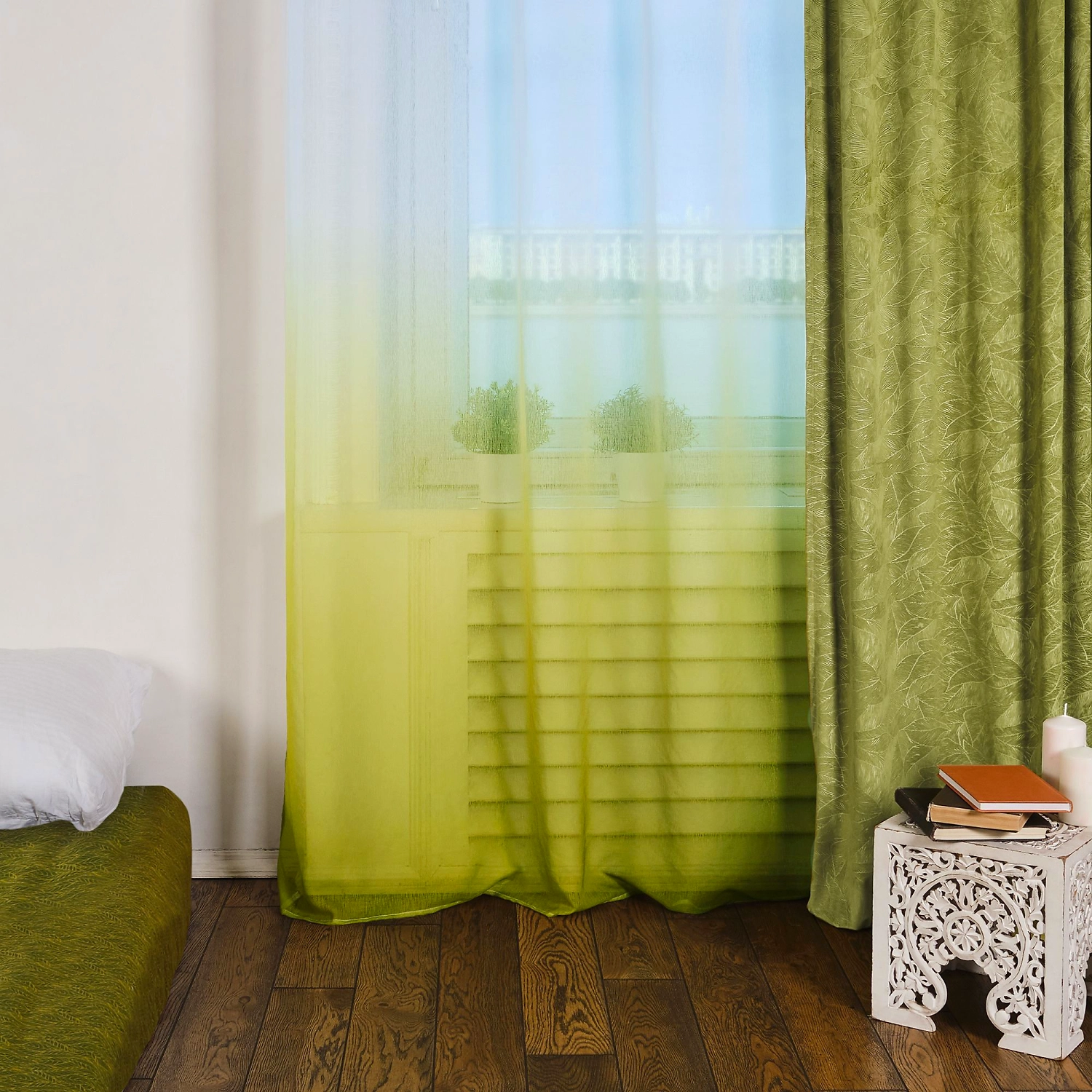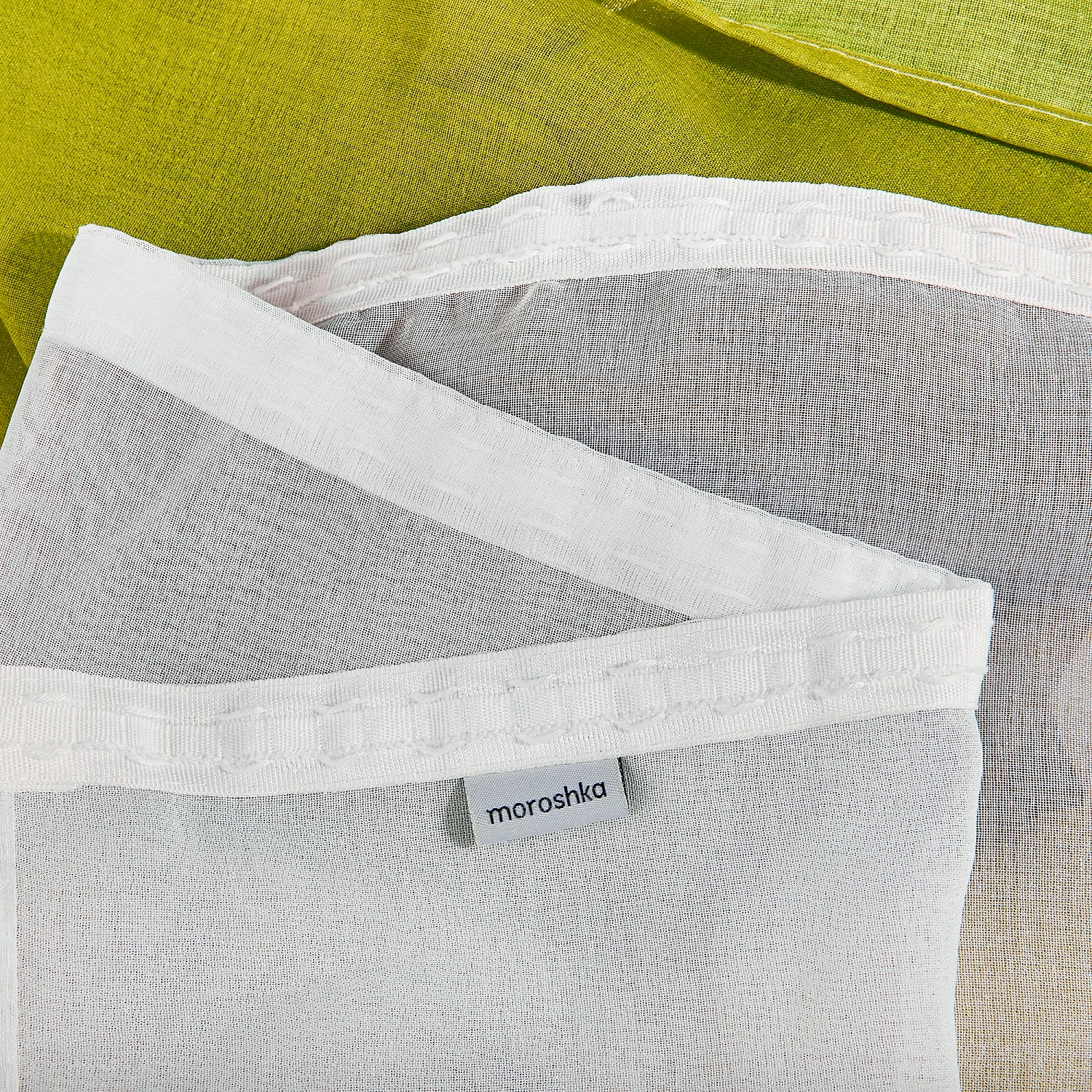 Лёгкий тюль Narassvete с бело-зелёным градиентом вдохновлён бескрайними чайными полями и магией рассвета, когда весь мир готовится к пробуждению.