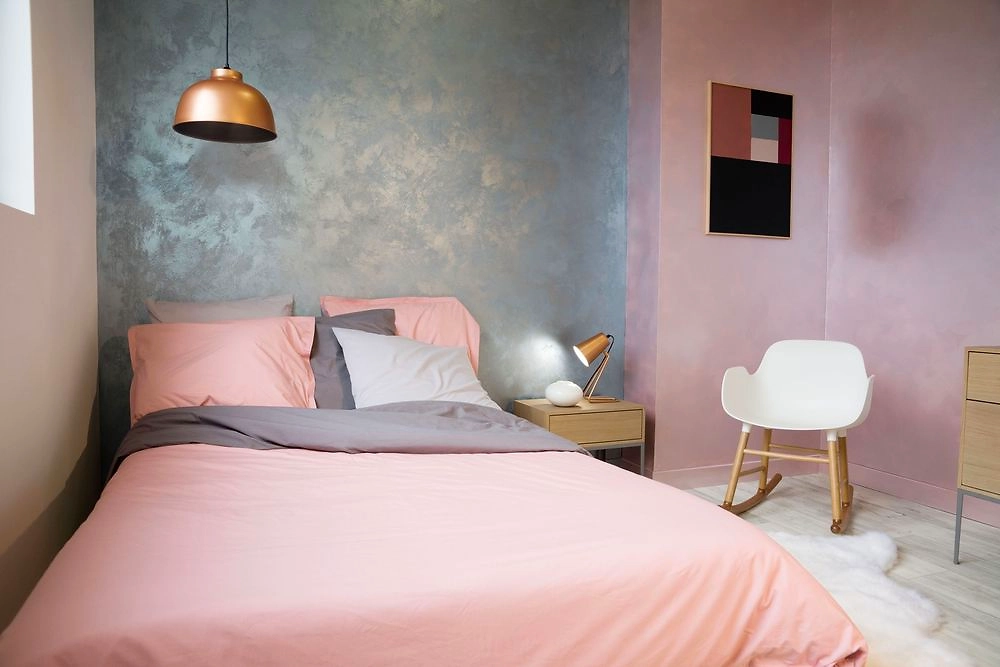 Краска интерьерная ID PERLE D'NACRE на акриловой основе придает стенам деликатное сияние. При нанесении валиком с коротким ворсом образует гладкое перламутровое покрытие.
