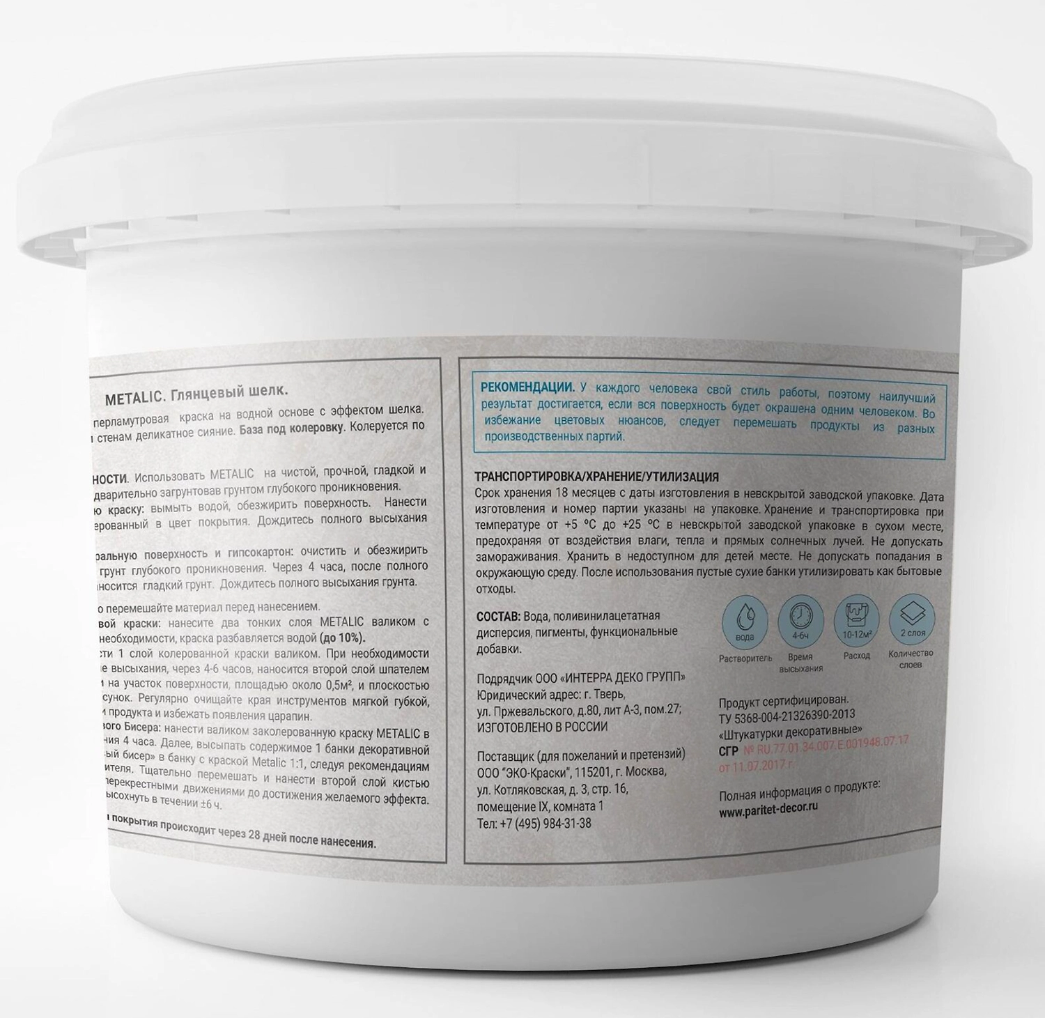 Краска интерьерная Paritet Metalic шелковая 2 л