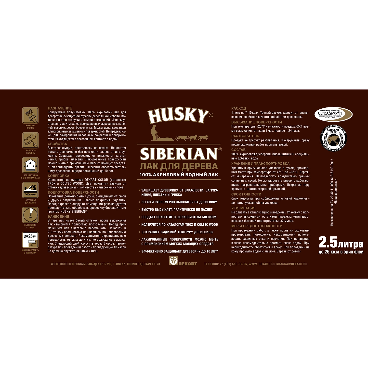 Лак для стен и потолков HUSKY Siberian бесцветный 2,5 л полуматовый