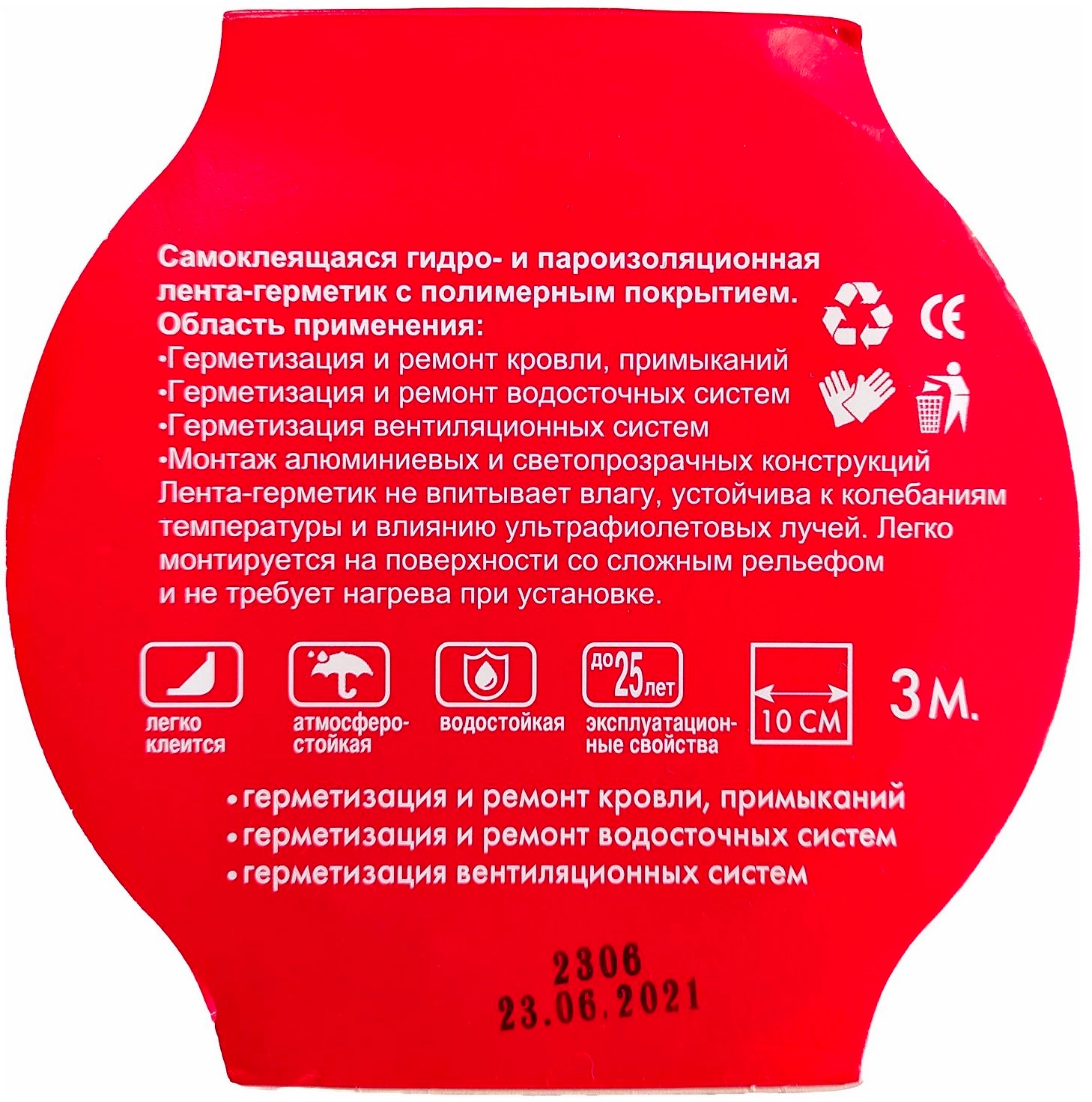 Применяется для герметизации и ремонта кровли, примыканий, водосточных и вентиляционных систем, монтаж алюминиевых и светопрозрачных конструкций, для внутренних и наружных работ. Нетоксична, не требует специальных защитных средств, легко клеится и проста в использовании.