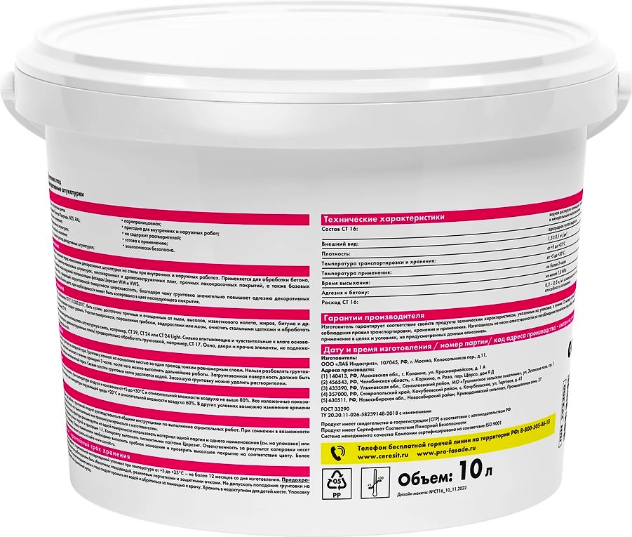 Водно-дисперсионная грунтовка для подготовки оснований под нанесение декоративных штукатурок. Грунтовка CT 16 предназначена для обработки оснований перед нанесением декоративных штукатурок на стены при внутренних и наружных работах.