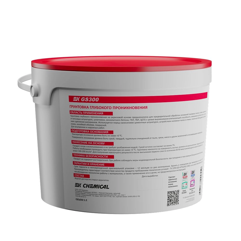Грунтовка глубокого проникновения на акриловой основе ЕК GS300 DEEP Frost предназначена для предварительной обработки оснований (бетон, гипс, кирпич, гипсокартон, гипсовая плита и т.д.
