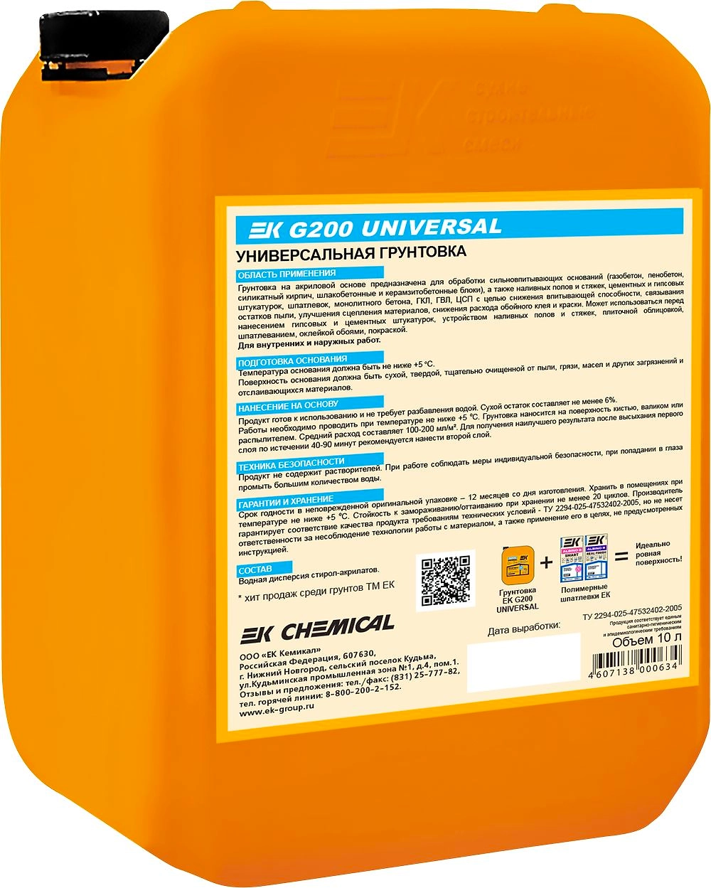 Универсальная грунтовка EK G200 незаменима при проведении различных видов строительных работ. Подходит для обработки различных оснований.