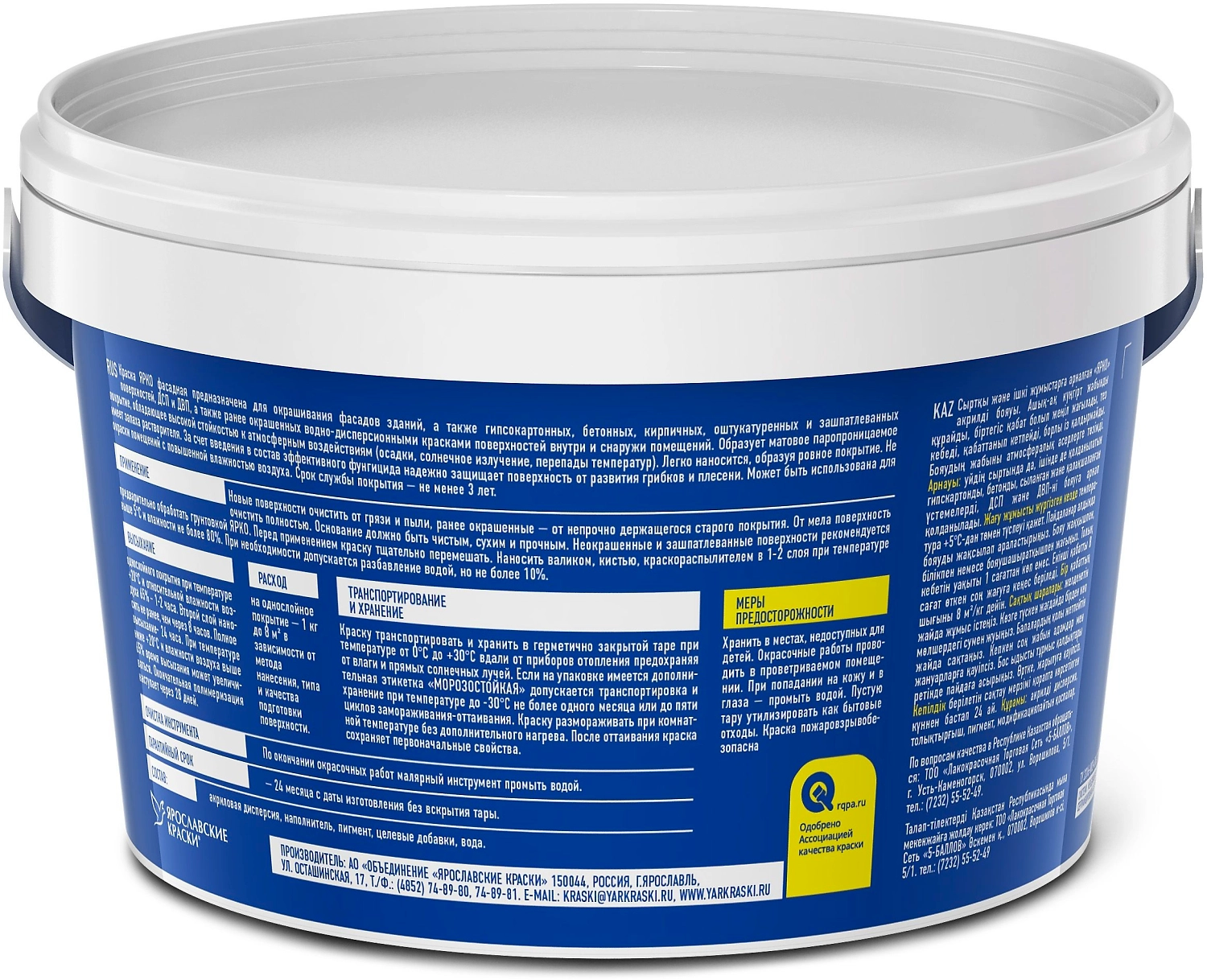 Краска акриловая атмосферостойкая ЯРКО предназначена для окраски фасадов зданий, а так же гипсокартонных, бетонных, оштукатуренных и зашпатлеванных поверхностей, ДСП и ДВП внутри и снаружи помещений.