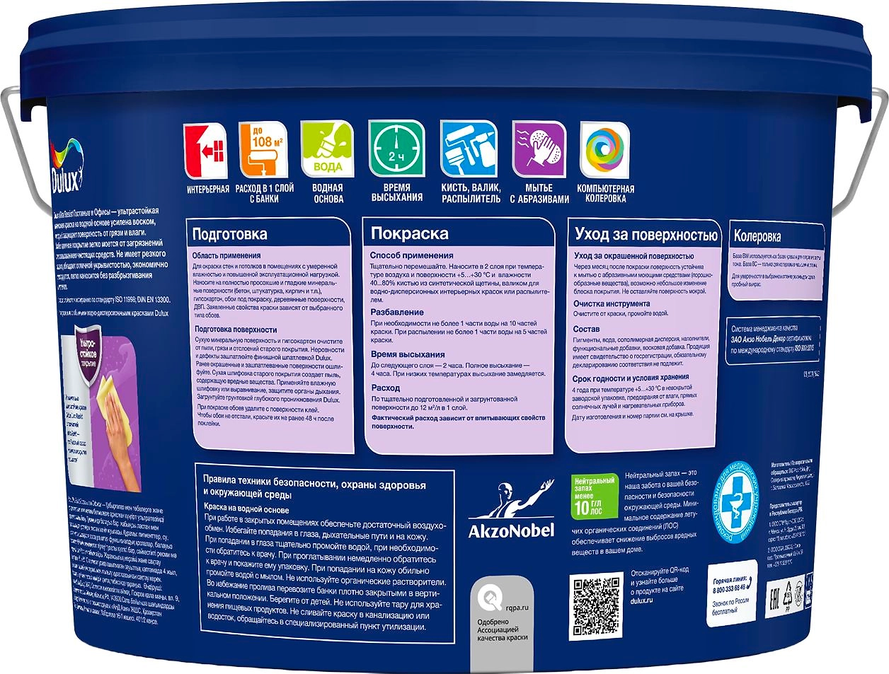 Краска для стен и потолков Dulux Ultra Resist Гостиные и Офисы матовая BC 9 л