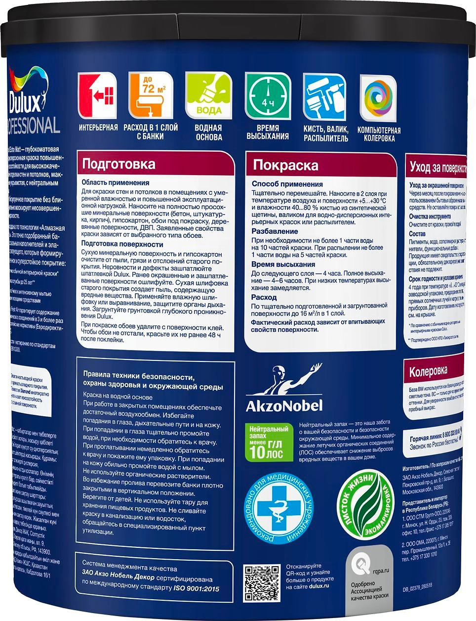 Краска Dulux Professional Diamond Extra Matt глубокоматовая BC 4,5 л