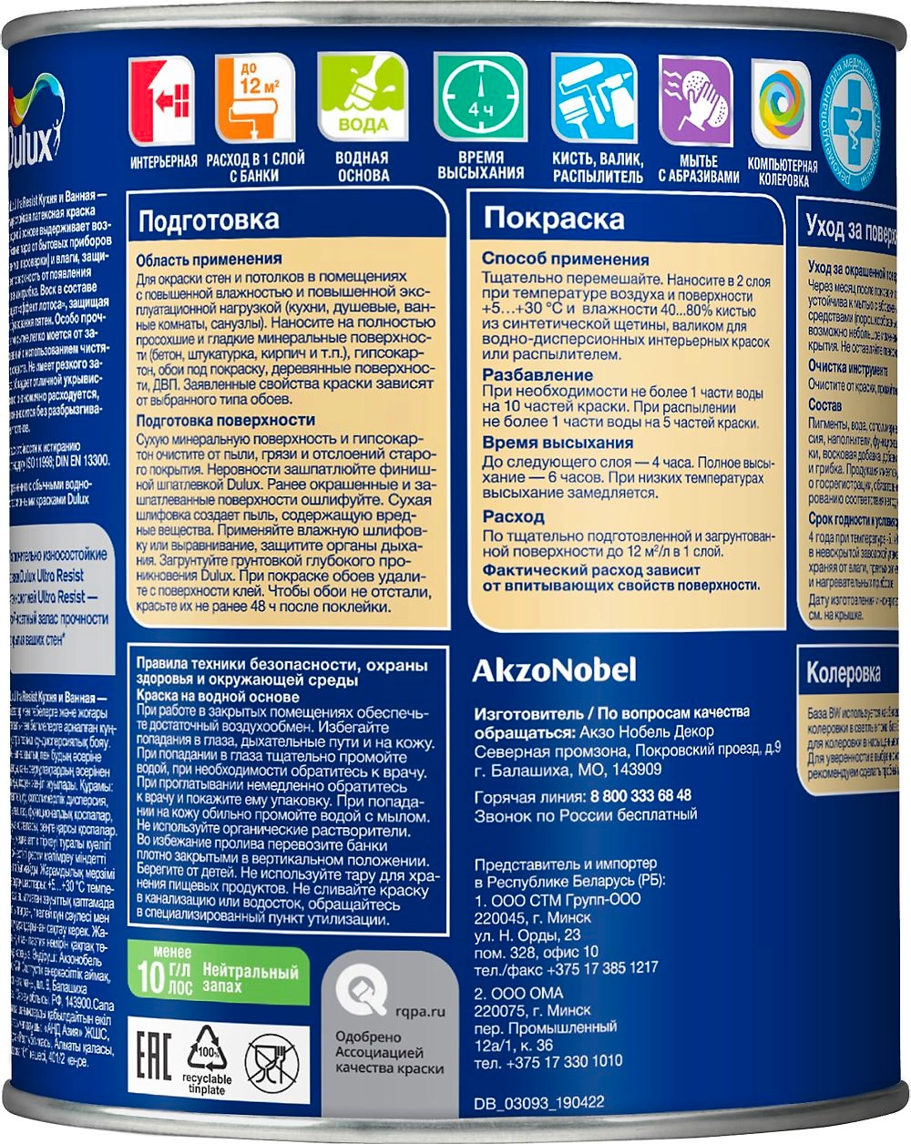 Ультрастойкая водно-дисперсионная моющаяся краска для стен в ванной комнате и кухне. Краски Dulux Ultra Resist – это 7-ми кратный запас прочности покрытия ваших стен.