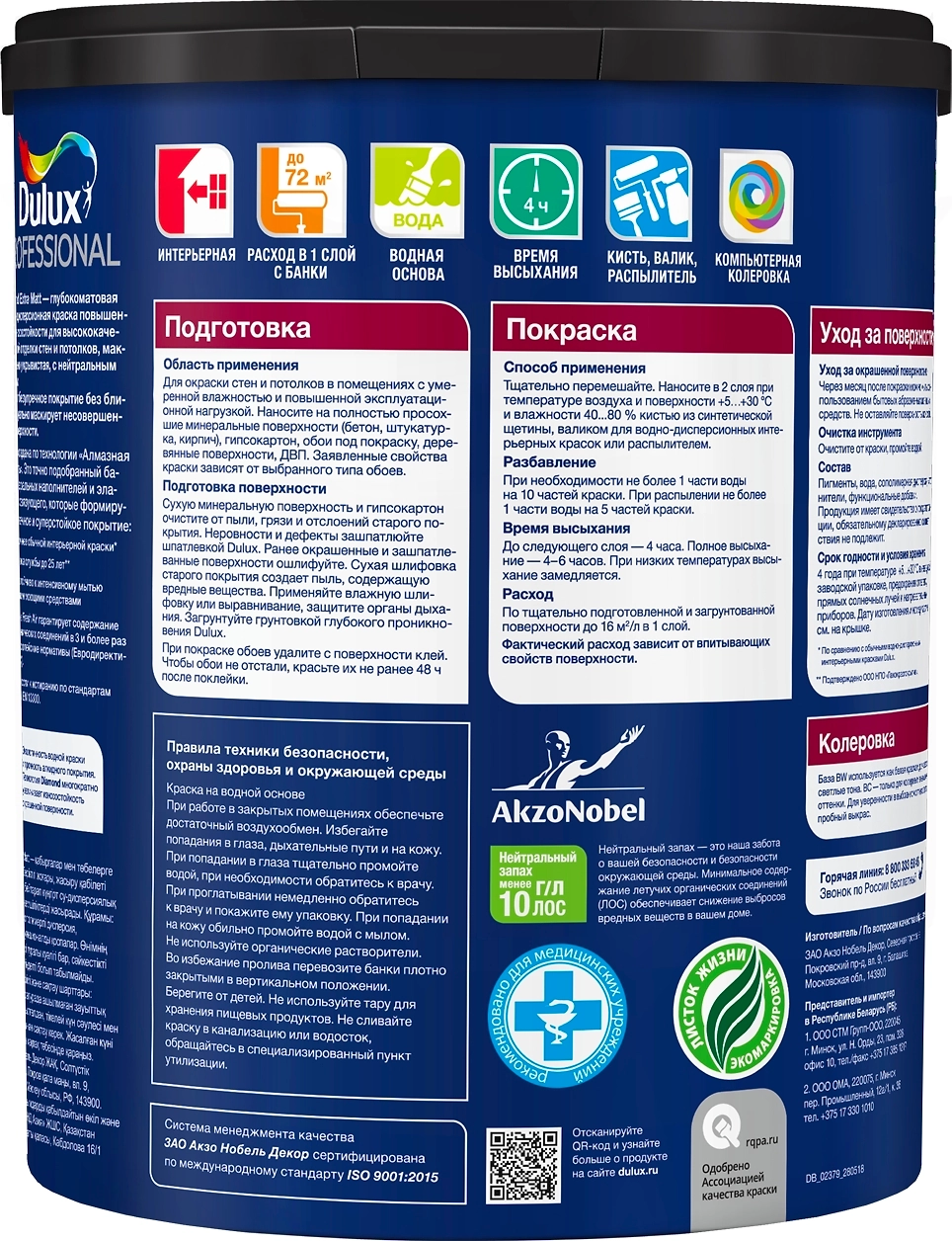 Глубокоматовая водно-дисперсионная краска повышенной износостойкости для высококачественной отделки стен и потолков, максимально укрывистая, с нейтральным запахом.