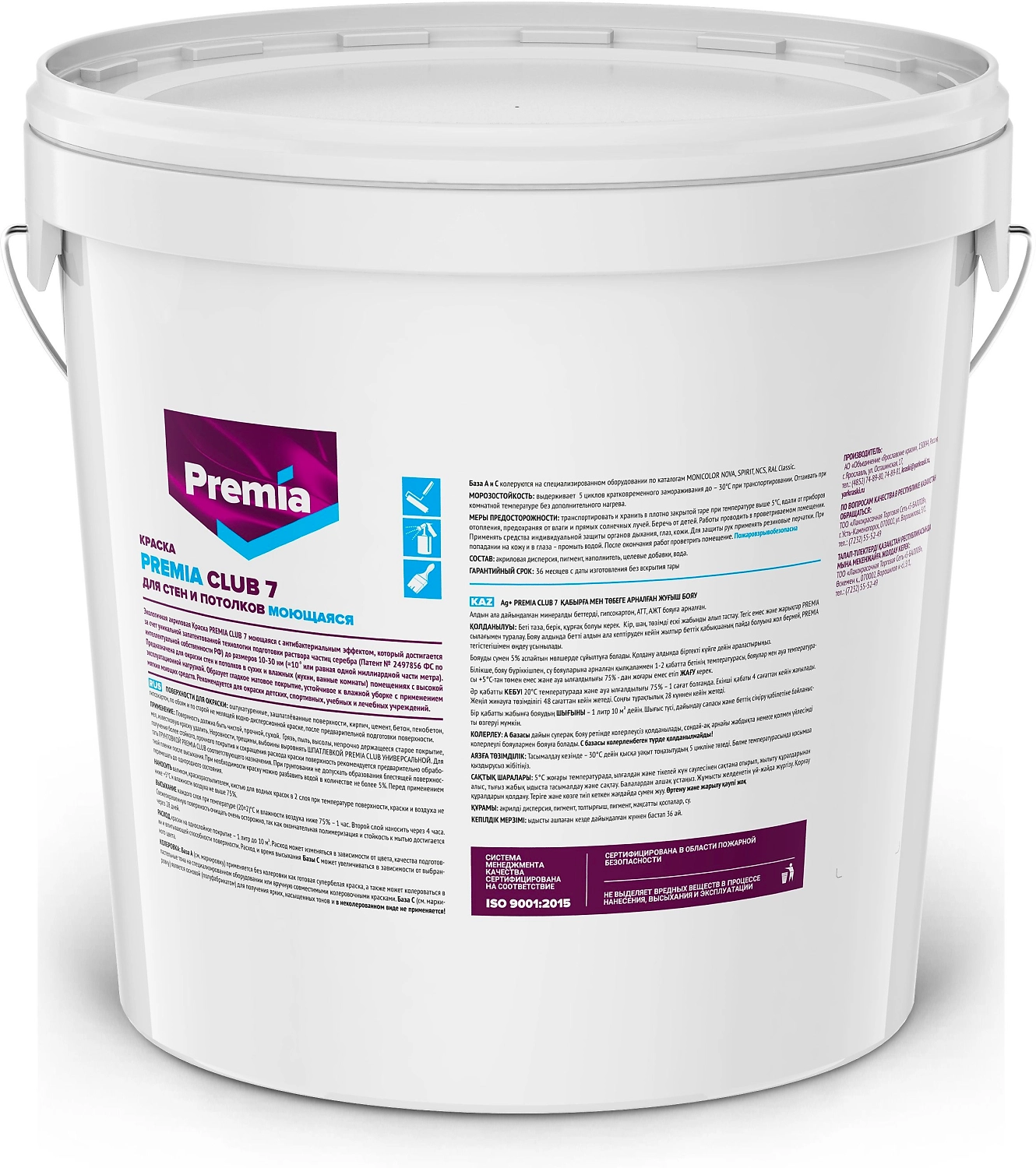 Краска интерьерная PREMIA CLUB 7 для стен и потолков белая база А ведро 18 л