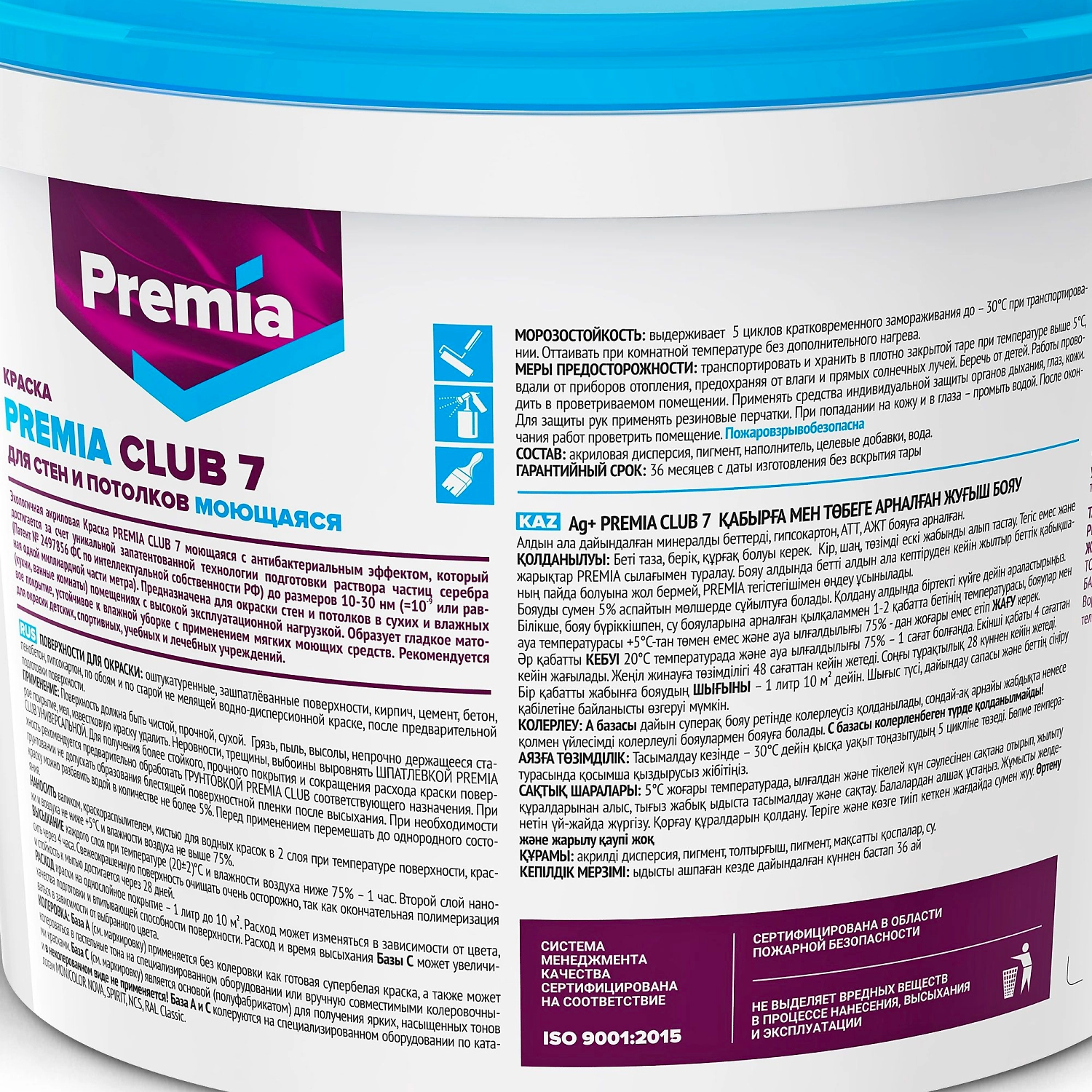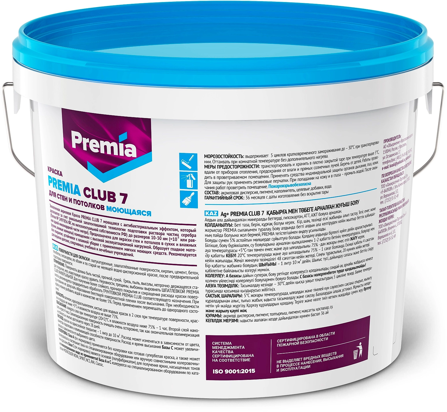 Краска интерьерная PREMIA CLUB 7 для стен и потолков белая база А ведро 9 л