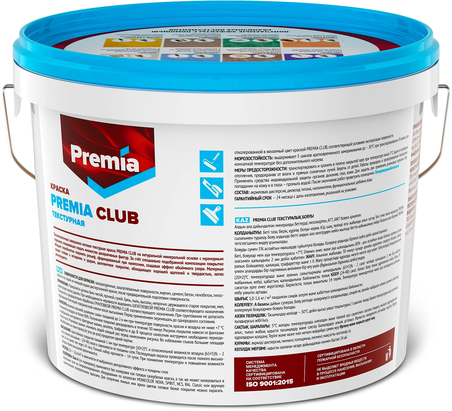 Краска текстурная PREMIA CLUB пластичная водостойкая белая база А ведро 9 л